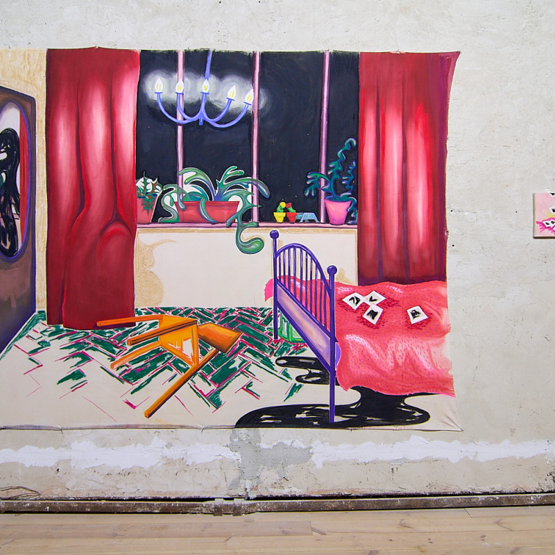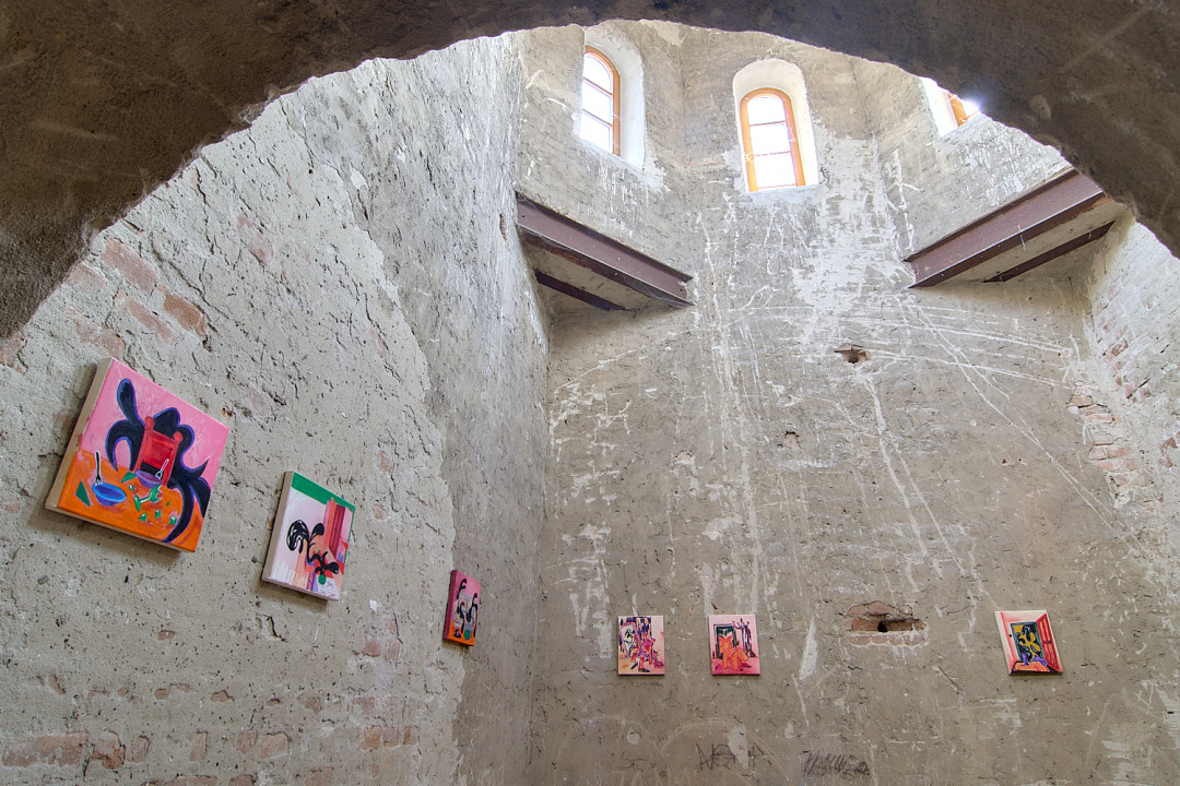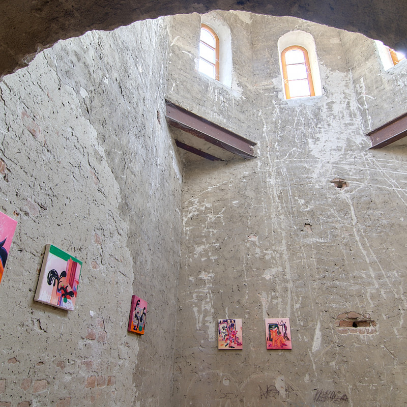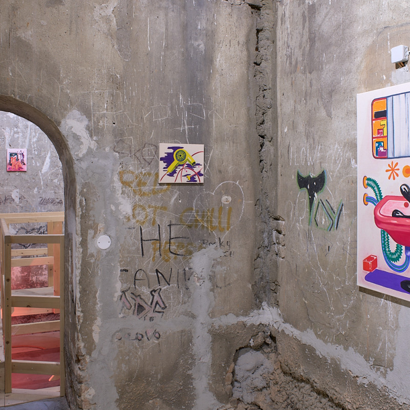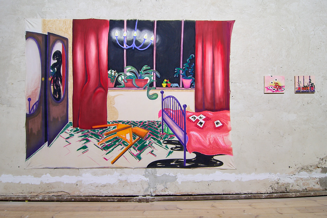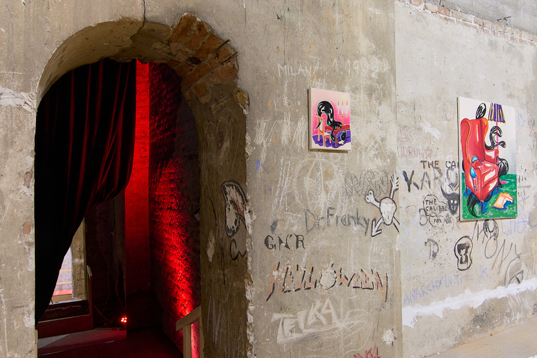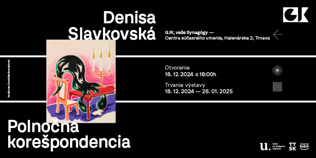 Výstava Polnočná korešpondencia Denisy Slavkovskej pozýva návštevníkov na fascinujúcu cestu do sveta tajomných a neobyčajných miestností, kde sa obyčajné predmety a zdanlivo známe priestory transformujú do podoby, ktorá je plná absurdity a surrealizmu. Autorka vytvára prostredie, v ktorom každodenné predmety - ako napríklad žiarovky, stoly alebo stoličky - strácajú svoju známu funkciu a stávajú sa súčasťou snového sveta, v ktorom strácajú svoje pevné miesto v realite. Miestnosti, ktoré sa zvyčajne javia ako pohodlné a známe útočisko, sa v jej obrazoch menia na podivné labyrinty, v ktorých logika a čas strácajú svoj bežný význam.