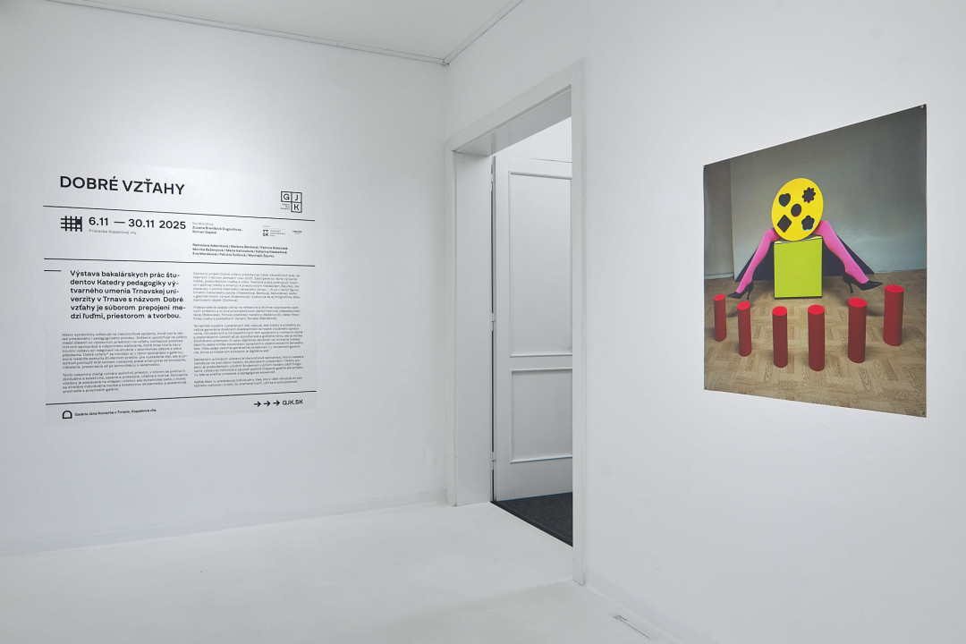 The exhibition of bachelor’s projects by students of the Department of Art Education at Trnava University explores the connections between people, space, and artistic creation. Its title symbolically refers to collaboration as the foundation of both the artistic and pedagogical process—highlighting the relationships that emerge between the works, the artists, and the exhibition space itself.