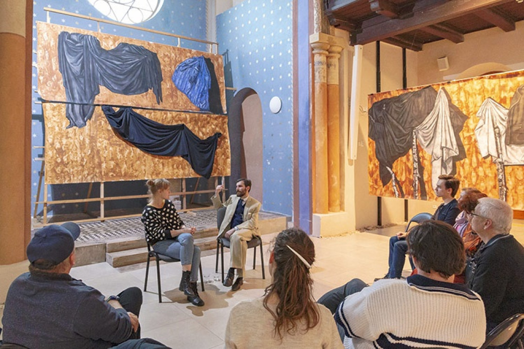 Na výstave autorka predstaví sériu drapérií. Sústreďuje sa na ornament, vzory textílií, cez ktoré vypovedá príbehy s nimi späté.