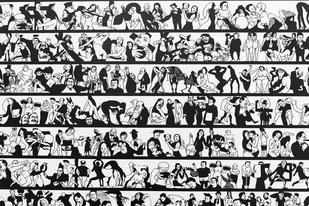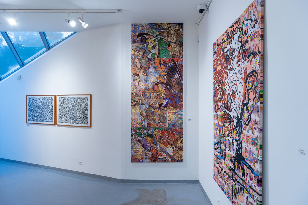 V tejto výstavnej dvojexpozícii Františka a Marka Blažovcov je možné zaznamenať aj ich spoločné, či podobné východiská: dominantné prvotné modelovanie obrazu v počítači, plošné podanie figúr a scén, kaleidoskopické skladanie a sekvenčné radenie epizód, remixovanie starších a osvedčených motívov a pod. Ide o veselé pestrofarebné „rozpixlované“ vízie, ale aj ich de-kompresie s kritickým podtextom. Zároveň ide o prvé spoločné vystúpenie otca a syna na výtvarnej scéne.