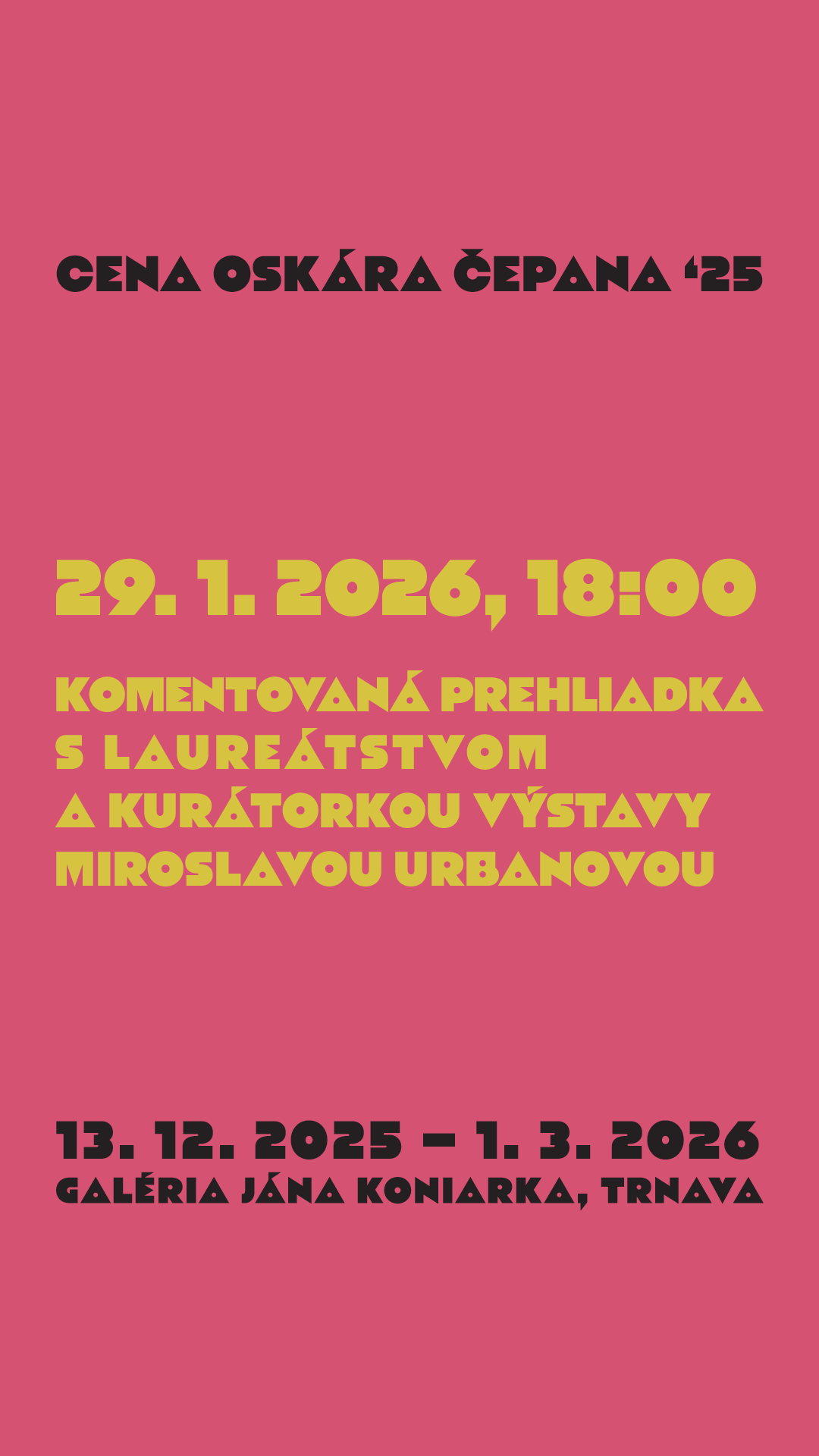 The laureates of the COČ 2025 award—Nikola Balberčáková, Ráchel Jutka, and Ľuboš Kotlár—will present their projects together with the exhibition curator Miroslava Urbanová.