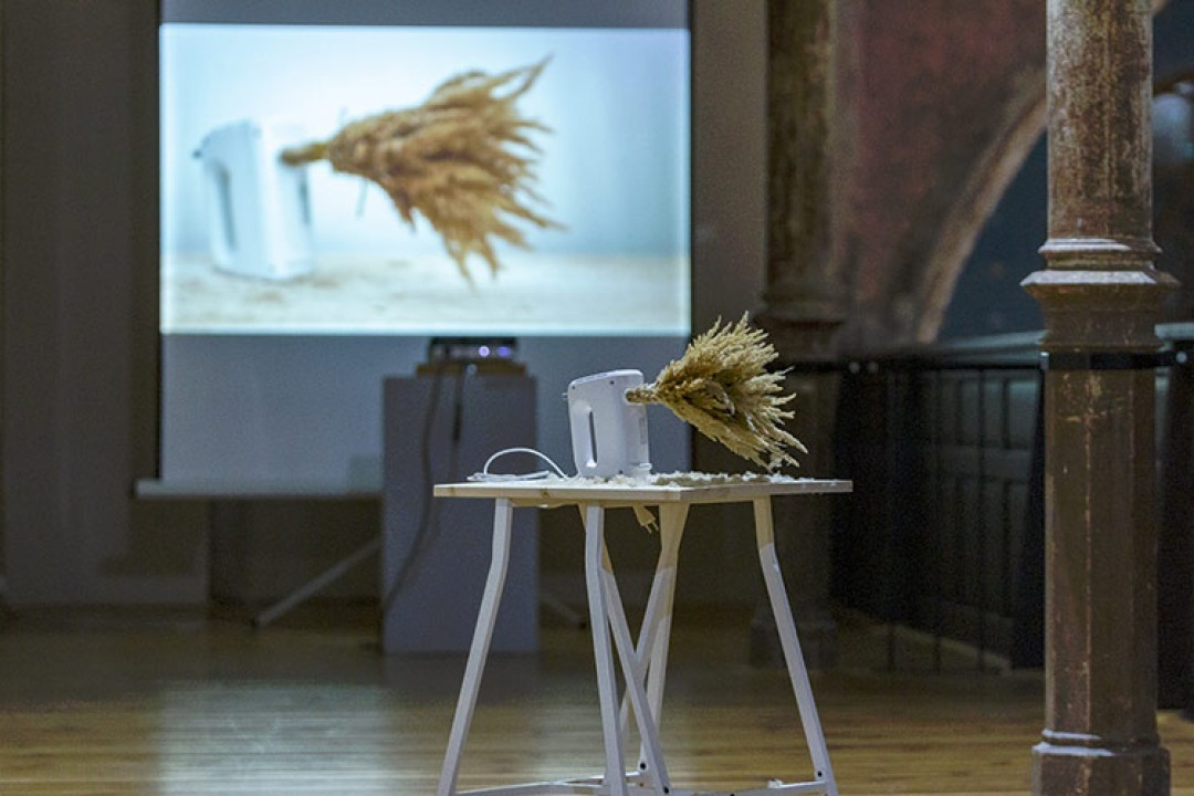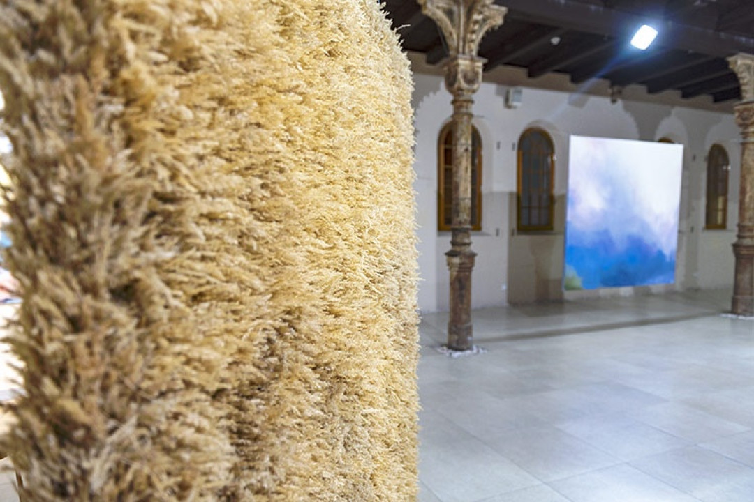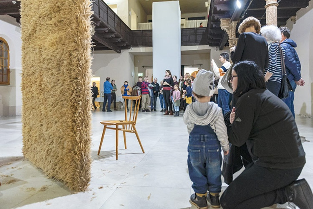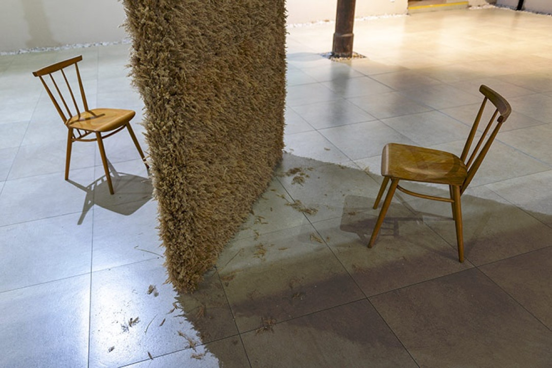 Na prvom poschodí v objektoch a videu silno rezonuje téma hranice ako prahu, ktorý je potrebný preklenúť. Otázku vykročenia k tomu druhému za cenu riskovania straty vlastného pohodlia opäť sprítomňuje jemnosť trávy, ktorá sa dotykom drobí a skutočný drevený prah, pripravený na divákovo prekročenie.