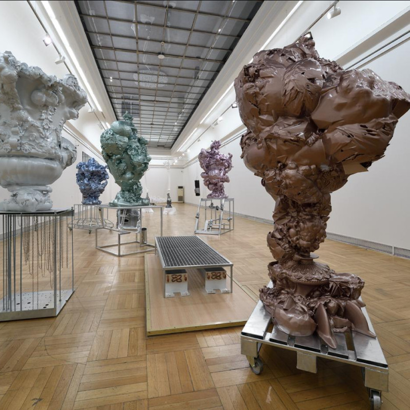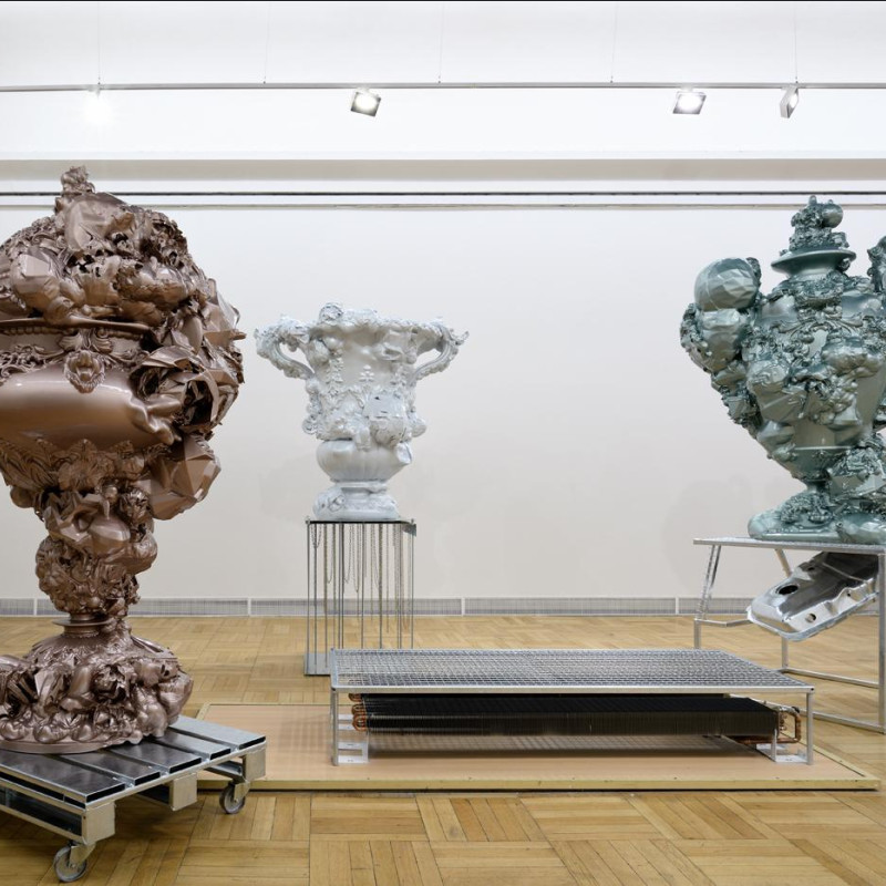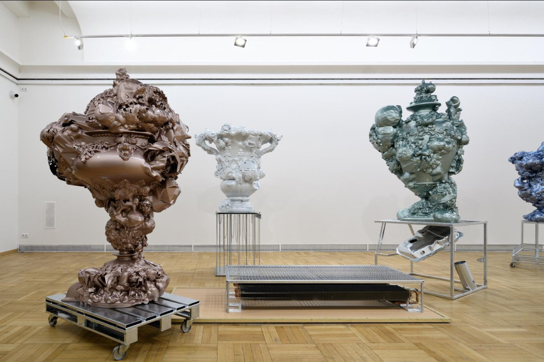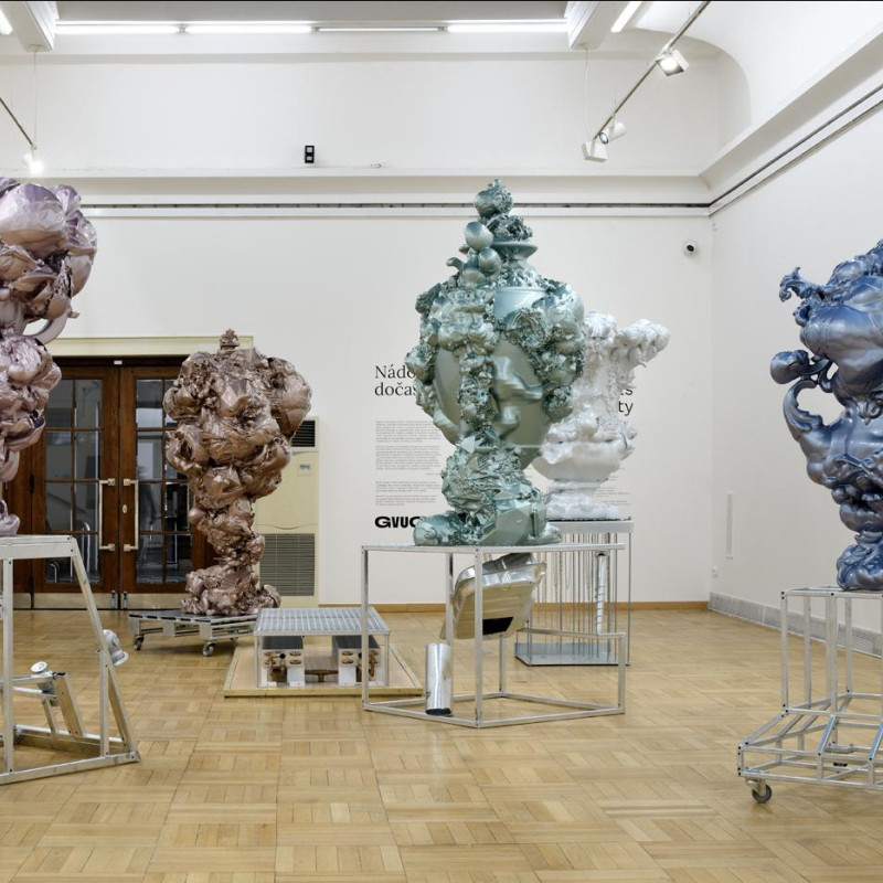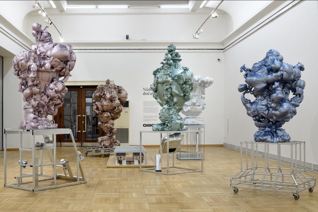 Kľúčovými sériami na ostravskej výstave sú prvýkrát prezentované Nádoby dočasnosti (2023–2024), kolekcia nadrozmerných barokizujúcich váz, ktoré sú transformované pomocou generatívnych programov a odkazujú k postkoloniálnym slohom a povrchnosti našej konzumnej kultúry (metalický autolak). Ďalšími dielmi sú v podobnom duchu inštalovaná zväčšená kostra autorovej ruky Dotyk stvorenia (2024) a inštalácia sadrových nádob Data Storage 20.21 (2020–2022), ktorých obsah umelec skonzumoval počas covidového lockdownu.