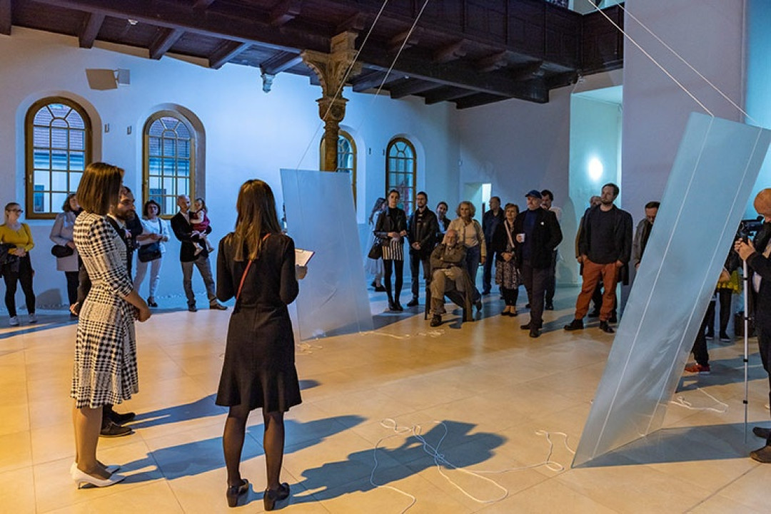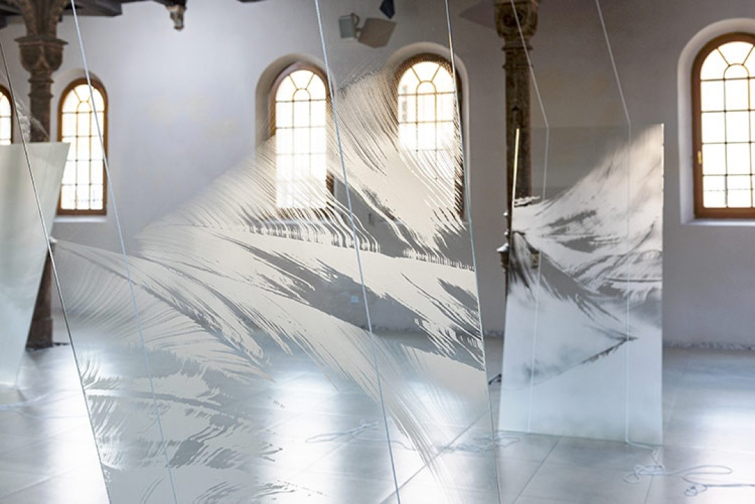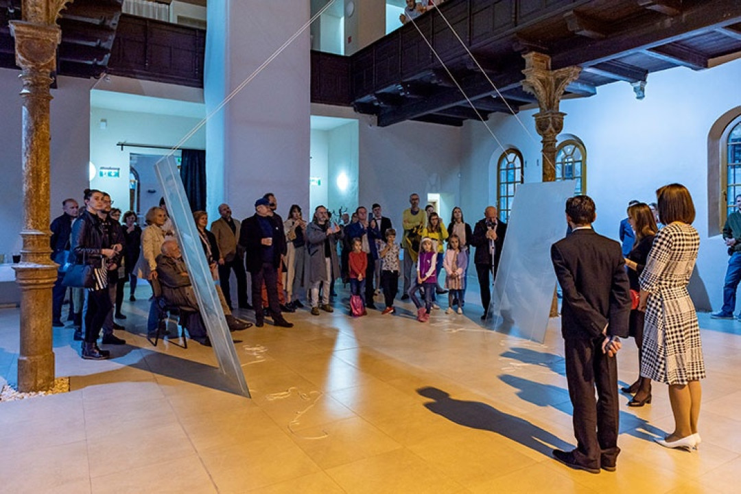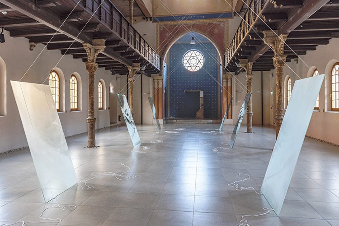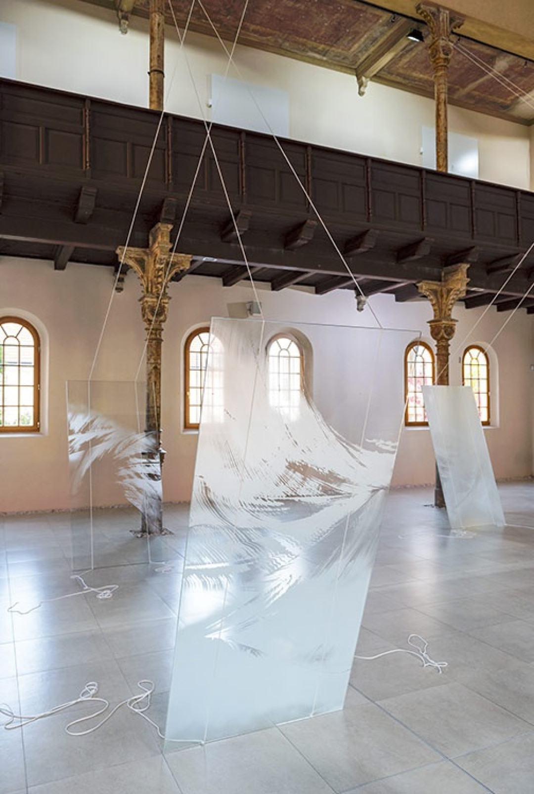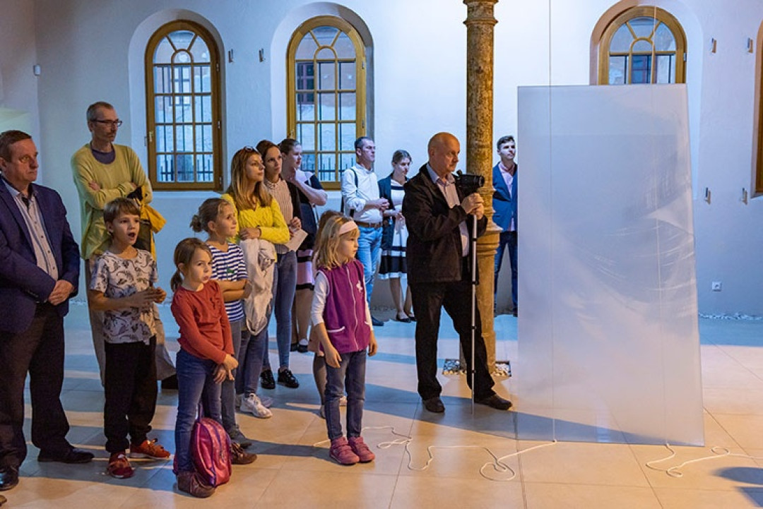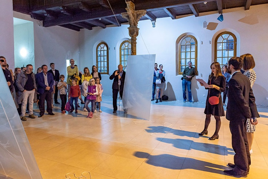 Trvanie výstavy: 15.10.(Ut) – 20.11.(Str) 2019 Samostatná výstava trnavskej umelkyne Marty Matejkovej Vjatrákovej (1990), absolventky bratislavskej VŠVU, pozostáva z prezentácie inštalácie pod názvom Pevné, tekuté, ľahké II. v priestore synagógy. Inštalácia bola prvýkrát prezentovaná ako diplomová práca v sakrálnom priestore kaplnky sv. Jána Evanjelistu v Bratislave v roku 2016 a autorka za ňu získala Cenu rektora VŠVU. Jej minimalistická práca pozostáva zo šiestich sklenených tabúľ s abstraktnou maľbou a videa, ktoré predstavuje a približuje proces tvorby so špecifickou maliarskou technikou na skle. Bielou, nehmotne pôsobiacou stopou na čírom skle, autorka zaznamenala pohyb povrázku – jeho odtlačky, fázy pohybu, či dotyky zhmotnenia života. Abstraktné maľby na skle akoby evokovali dýchanie na sklenenú tabuľu, oblaky dychu a ich postupné vynáranie sa a miznutie. Podľa autorky sa v nich odzrkadľujú metamorfózy rôznych atmosférických javov na oblohe. Okrem maľby umelkyňu zaujíma samotné architektonické rozloženie tabúľ v priestore, ktoré tvorí cestu a navodzuje dojem slávnosti, apoteózy fyzického i duchovného pohybu. Reinštaláciou práce v synagóge v Trnave sa nemení pôvodný umelecký zámer, avšak jej charakteristický priestor vytvára iné prostredie na ukotvenie sklenených tabúľ, ktoré prispejú k veľkorysejšiemu a prepracovanejšiemu predstaveniu priestorovej skladby. Nový priestor prinesie odlišnú inštaláciu, ale neodkláňa sa od pôvodného zámeru „nestabilnej“ provizórnej prezentácie, ktorá zvýrazňuje krehkosť a transparentnosť samotného materiálu ako metaforu lability ľudskej existencie.