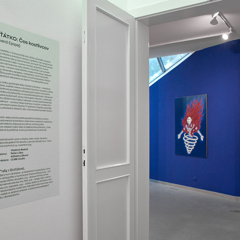 Individuálna výstava Matúša Maťátka (1984) v Trnave prináša silnú dávku súčasného vizuálneho jazyka, vyzývavú obrazovú inštaláciu ikonických obrazov a príbehov. Ide o programové budovanie encyklopedickej obrazárne, kde sú zaznamenané „zlomové“ historické udalosti a krízové momenty našich štátotvorných dejín a autorov ironický, až pichľavý humor. Na scéne sú hutne zoštylizovaní naši hrdinovia, idoly, zbojníci, či partizáni, ale aj dnešní kostlivci, čo vypadávajú zo skrine. V druhom kole Maťatko svojsky komunikuje s dejinami umenia – inšpirácia Muchovou Slovanskou epopejou, interpretácia Jána Francisciho od Bohúňa, portrét Ľudovíta Štúra podľa Františka Kolářa, či Kulichovej postavy Matice slovenskej, ale aj zapojenie niekoľkých diel priamo zo zbierok Trnavskej galérie a pod.