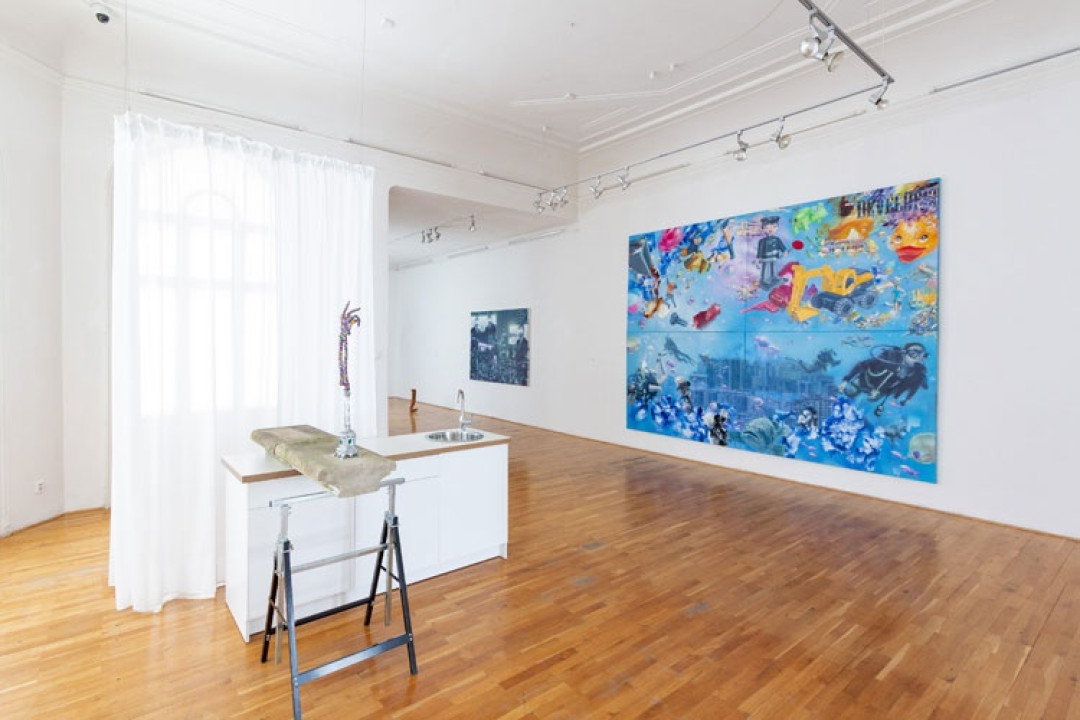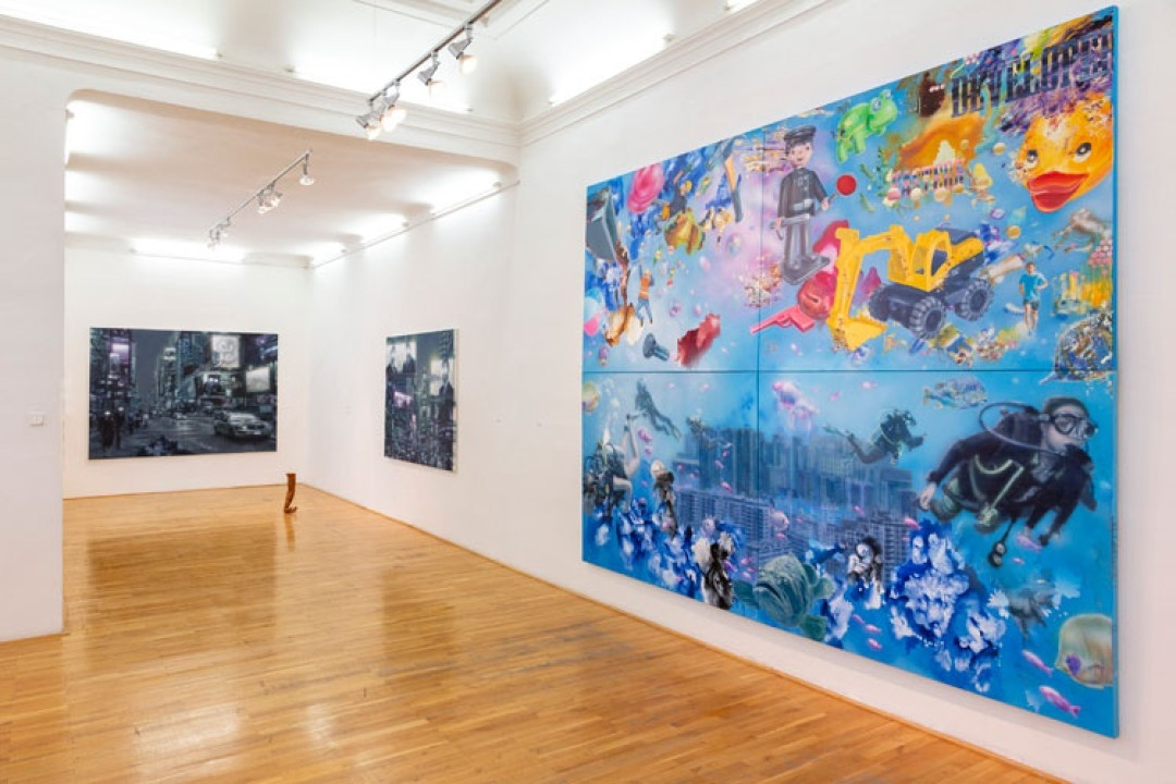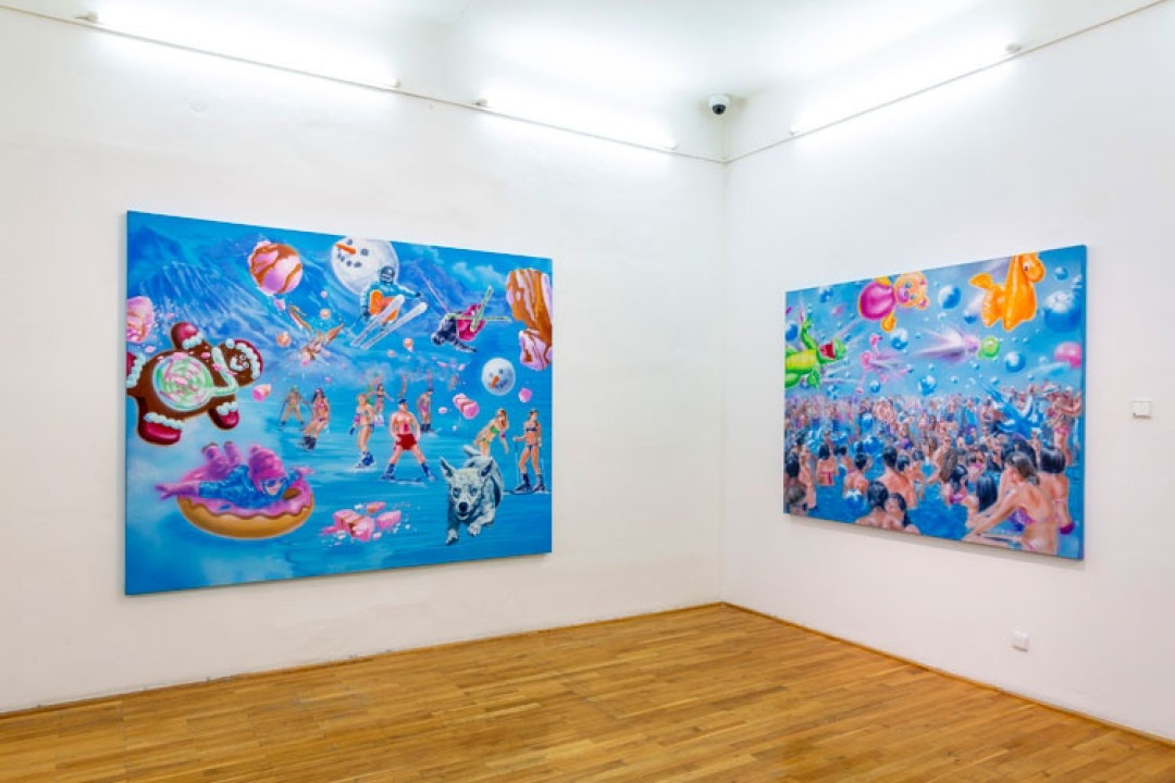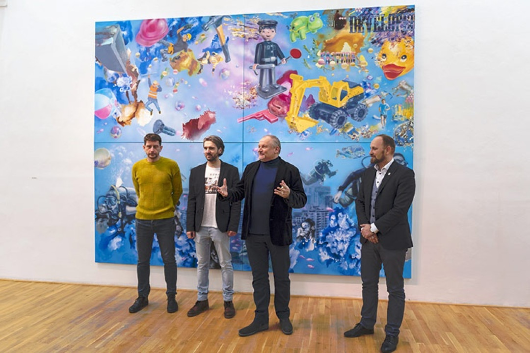 V rozmerných scénach akrylu a airbrushu Michala Černušáka sa objavujú vznášajúce sa architektúry, politici, kozmonauti aj developeri, hýriace plážové párty, rútiaci sa americký sen, ale aj scény katastrof, kolízií s davom ľudí, či pohlavármi s „vypálenými“ očami (Leaders, Omenklatúra, We Saw You). Na tieto iluzívne whirlpoolové „hry dospelých“ so zelenými vojačikmi sa nechápavo prizerajú rozhádzané zástupy hračiek, panákov a malých buldozérov (We Are Not Your Toys, Eastern Developer).