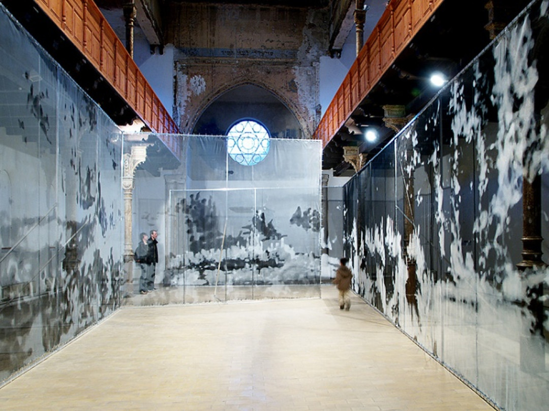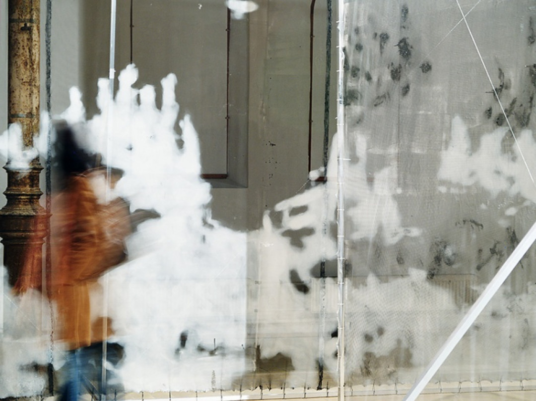 Maľba spája vonkajšie prostredie s vnútorným presne opačným spôsobom, ako keď sledujeme krajinu cez okno, tu vnímame interiér cez obraz krajiny. Tým, že je maľba priehľadná, stáva sa krajina efemérnejšou, „je aj nie je tu“, stáva sa akoby spomienkou, stopou niečoho už minulého. Maľba na sieti je zároveň medzerou v priestore, chybou videnia implantovaním ďalšieho obrazu...