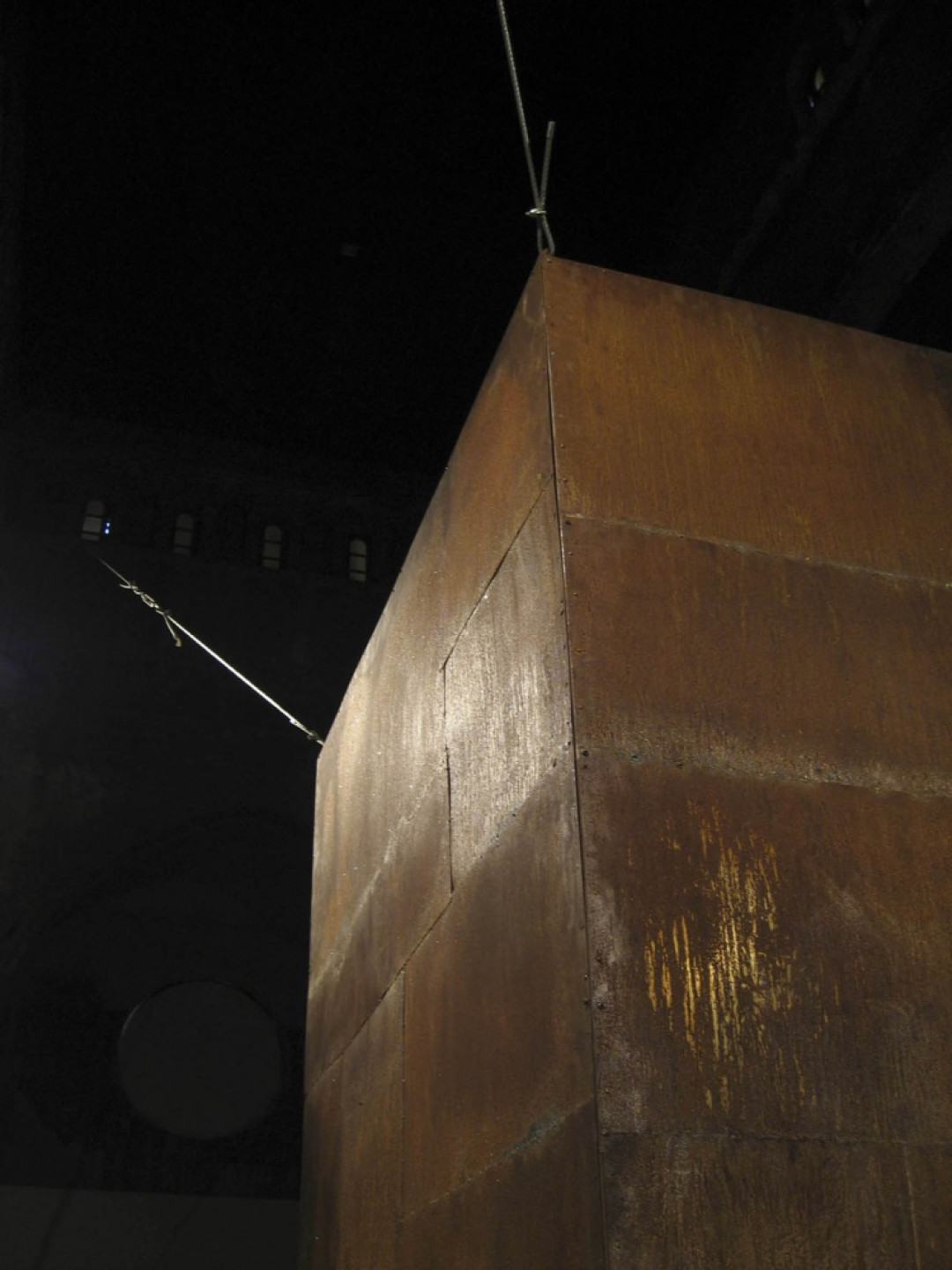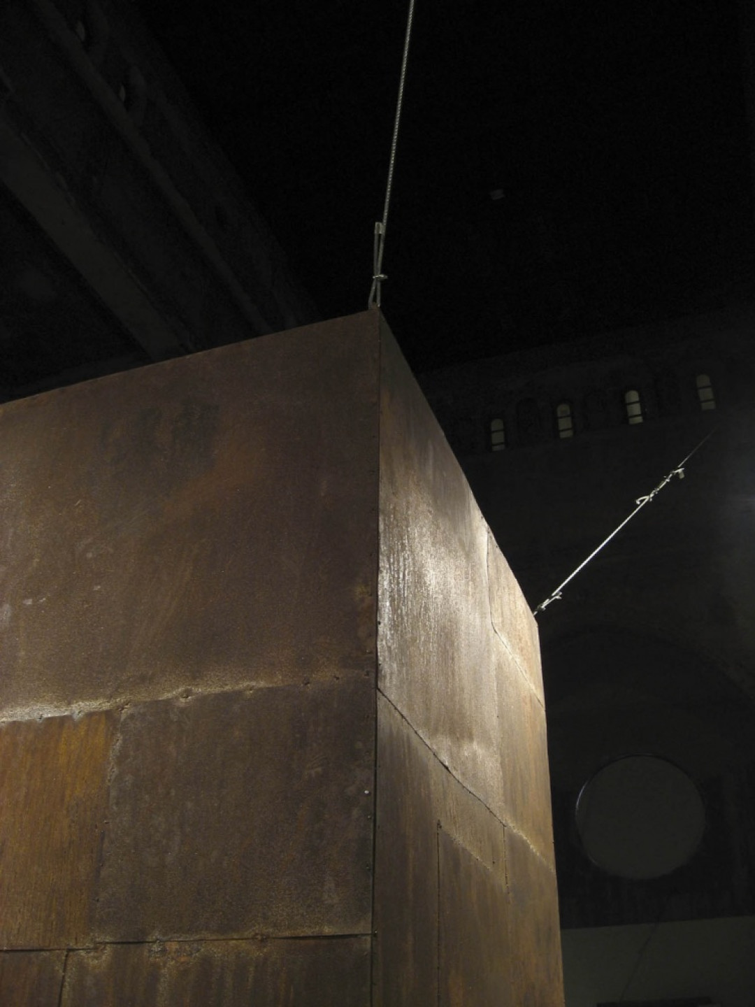 Samotný pojem arela znamená výrazne ohraničenú časť areálu pre určitý druh rastlín či živočíchov a zároveň evokuje ženské meno Arella, z hebrejčiny posol Boží, anjel. Obidva tieto významy je možné premietnuť do tejto inštalácie. Kocka v tomto prípade predstavuje uzavretie, zablokovanie, hranicu. Ide o limit nielen priestorový ale aj mentálny, duchovný a morálny. Vymedzovanie a určovanie existenčného priestoru. Ide o uzatváranie a malosť ducha nielen v prípade jednotlivca, ale aj neschopnosť komunity o pochopenie iných etník, náboženstiev, či názorov. Siný tlkot na kovovú stenu kocky je pripomenutím týchto momentov, staronovým posolstvom a „nehrdzavejúcou“ kultúrnou pamäťou.