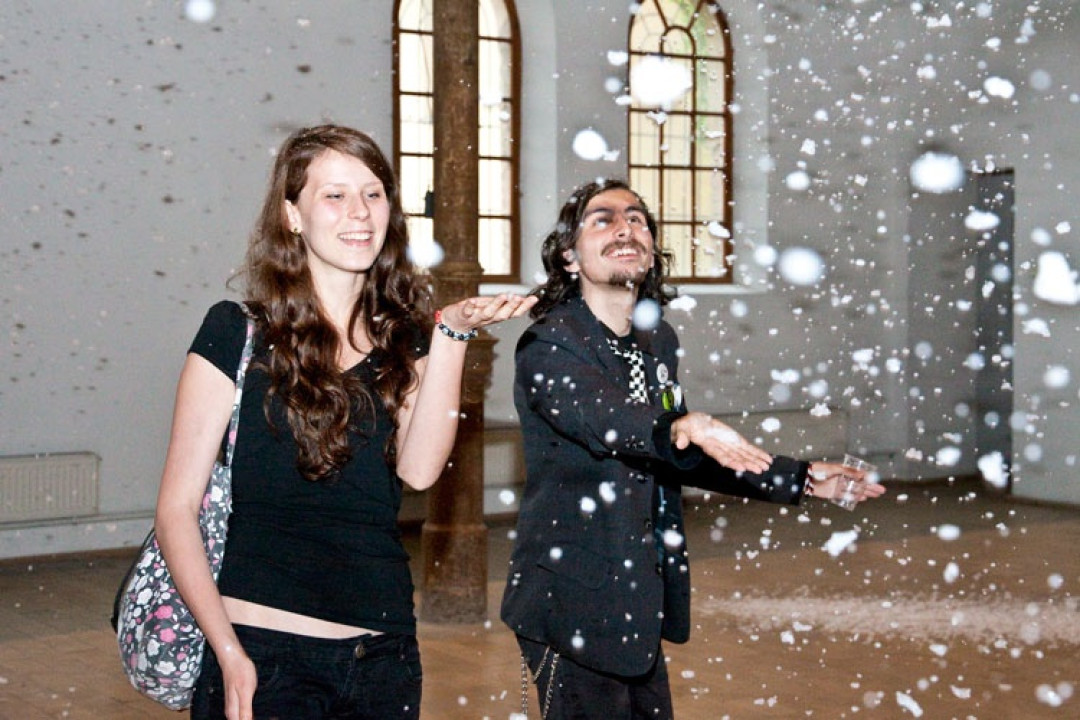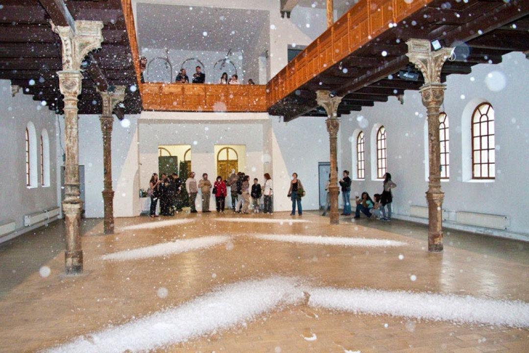 Po roku 2000 realizuje Balka aj rad prác v médiu video, v ktorých sa okrem iného objavujú aj tiché zábery sneženia v zimnej krajine neďaleko bývalých koncentračných táborov (Bambi, 2003). V aktuálnom trnavskom projekte autor pokračuje v „dematerializácií“ pamäťových záznamov a realizuje sedem snehostrojov, ktoré v určitých intervaloch rozprašujú sneh. Balka jednak pracuje s geniom loci tejto bývalej sakrálnej architektúry a jednak pracuje so židovskou kultúrou a tradíciou (sedem bodov je metaforou sedemramenného svietnika menorah), s osobnou a kolektívnou pamäťou. Prináša vyrovnanie sa s minulosťou – s holokaustom, pominuteľnosťou a rozptýlením. Projekt teda predstavuje obrátenie sa k minulosti (samotný názov výstavy je anagram - slovná hra čítania slova „synagóga“ odzadu) aj hravú reverznosť nastolenej situácie (snežiaca guľa, sneženie v interiéri a v lete).