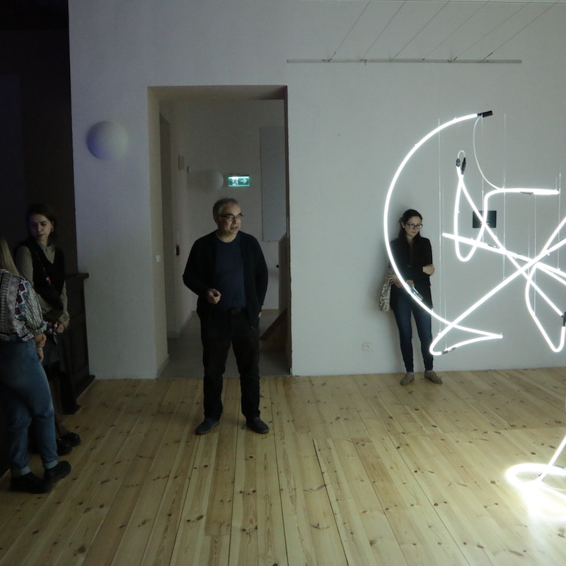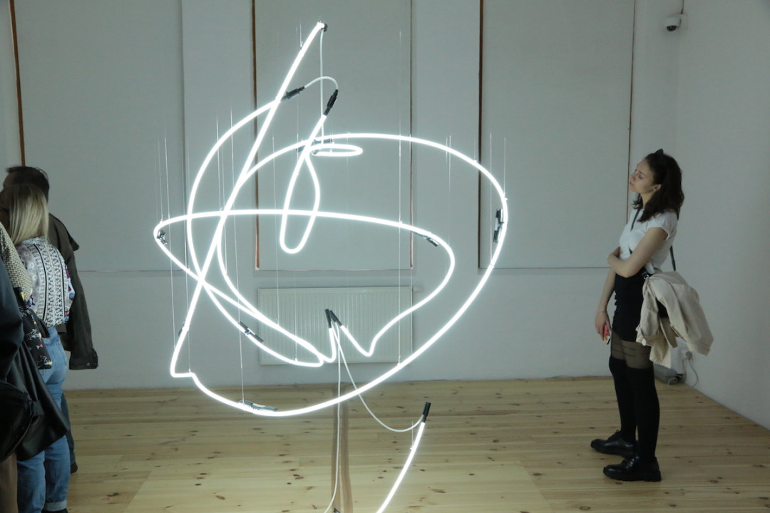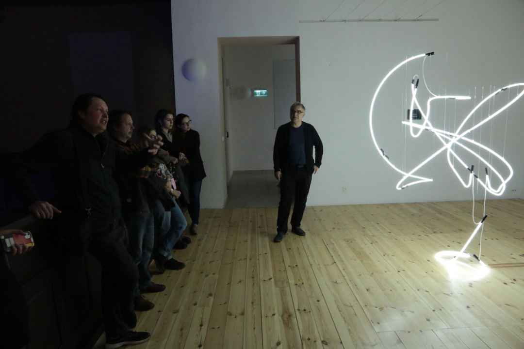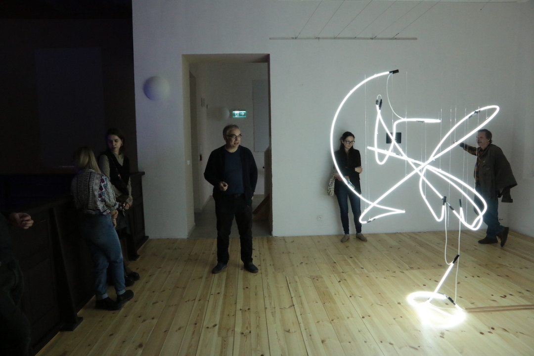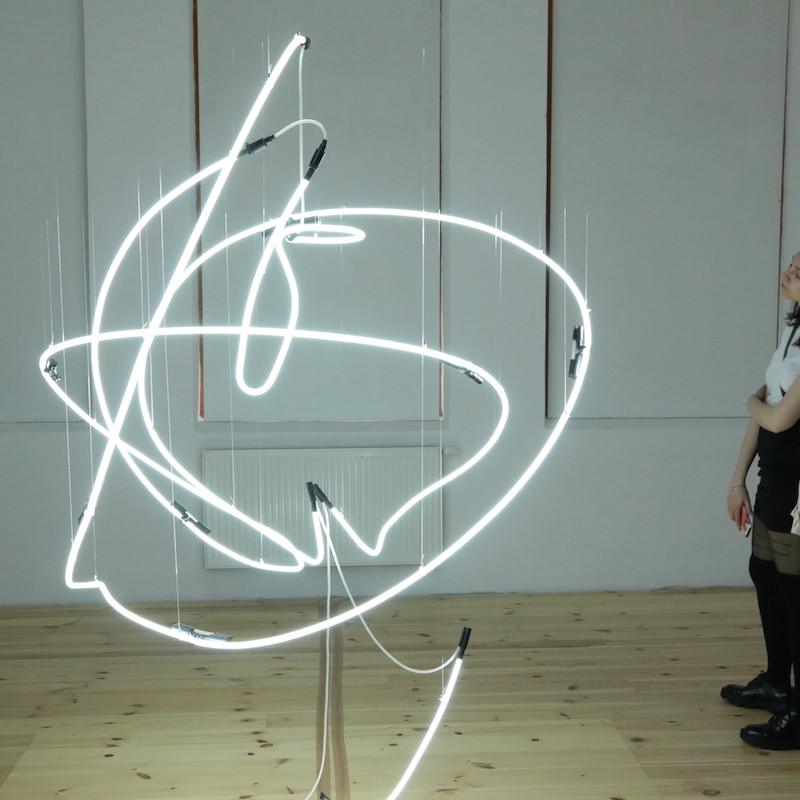 Na empore sa vznáša subtílna inštalácia z bielych neónov. Predstavuje svetelný „zápis“ pohybov tanečníčky z väčšej série pod názvom „Tanečná kaligrafia“. Na emporách bude atmosféru dokresľovať laserová projekcia. Pavel Korbička tak prináša do trnavskej synagógy tajomnú „kresbu“ svetlom a skúmanie perspektív daného priestoru. Ide o druhú samostatnú prezentáciu Pavla Korbičky na Slovensku (v roku 2014 mal výstavu Event of Space v košickej Kunsthalle).