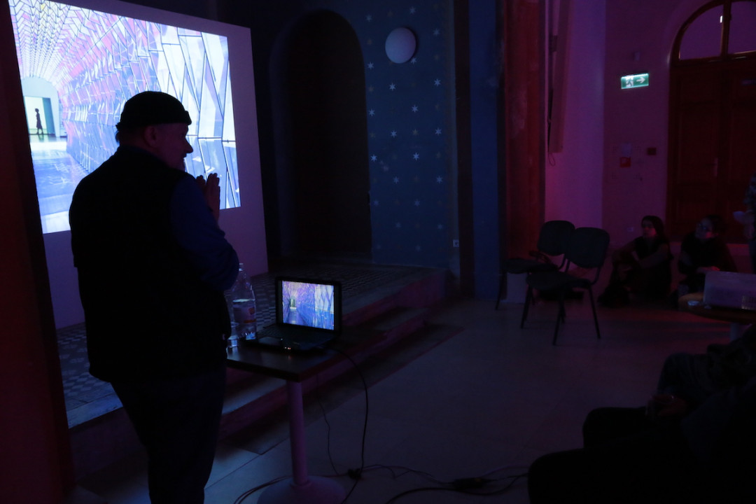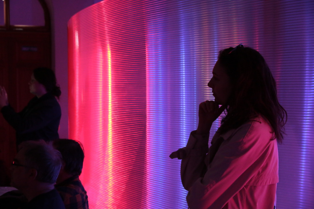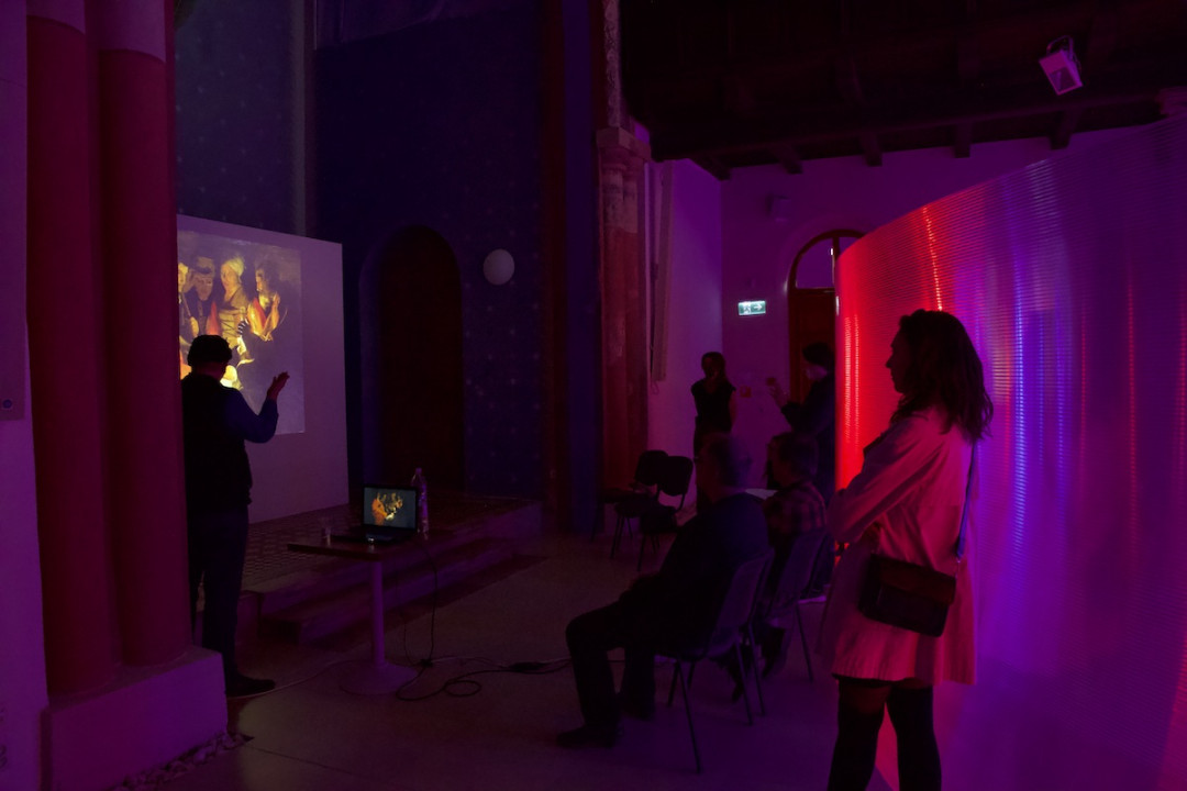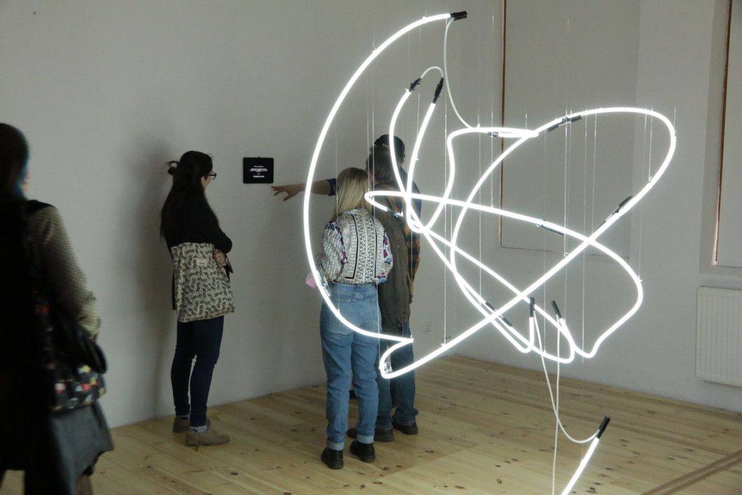 Na empore sa vznáša subtílna inštalácia z bielych neónov. Predstavuje svetelný „zápis“ pohybov tanečníčky z väčšej série pod názvom „Tanečná kaligrafia“. Na emporách bude atmosféru dokresľovať laserová projekcia. Pavel Korbička tak prináša do trnavskej synagógy tajomnú „kresbu“ svetlom a skúmanie perspektív daného priestoru. Ide o druhú samostatnú prezentáciu Pavla Korbičky na Slovensku (v roku 2014 mal výstavu Event of Space v košickej Kunsthalle).