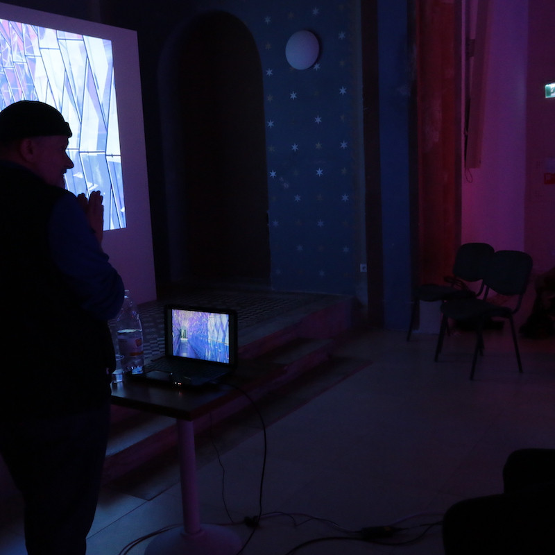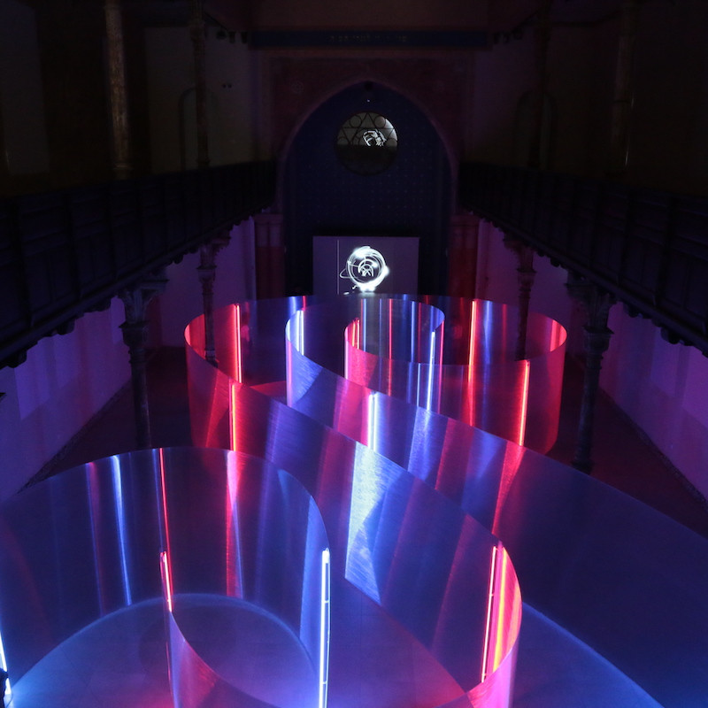 Pre objekt synagógy prináša konšteláciu v troch úrovniach. Spodná hala je pripravená špeciálne pre tento priestor a vytvára magický svetelný labyrint, ktorým divák je nútený prejsť. Ide o polykarbonátové transparentné platne, ktoré „mapujú“ priestor synagógy a vytvárajú pre vnímateľa osobitý vnem limitov priestoru (nastavené chodbičky) a ponáranie sa do odlišnej svetelnej atmosféry (sústava neónov v kontrastnej farebnosti).