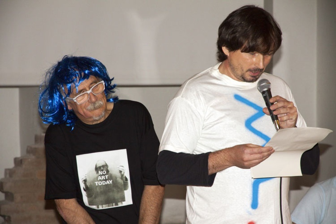 Výstava (kde sa v skratke ukrýva aj autorovo meno R.NAI) je originálom, ktorý originál na formálnej – printovej báze banalizuje, na báze obsahovej ho však syntetizujúcim poňatím, v kombinácii s originálom, zvýznamňuje. Je poctou. Je BEST OF. Roman Popelár Performance na vernisáži: trnava.sme.sk /TASR/: