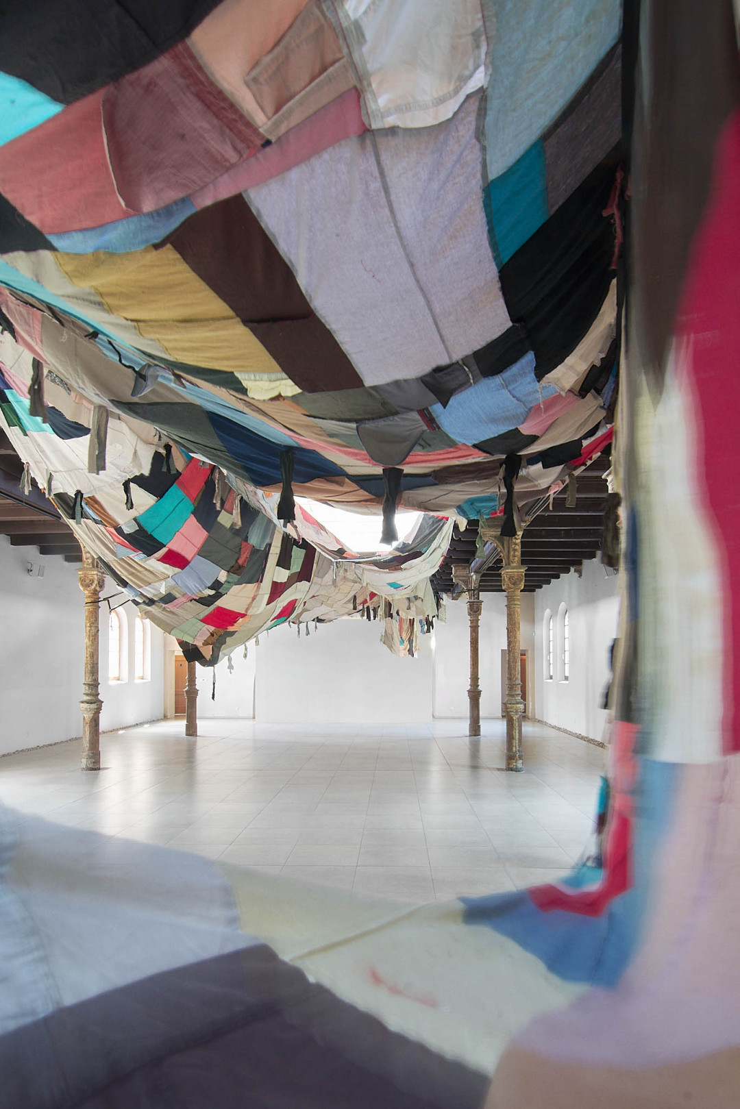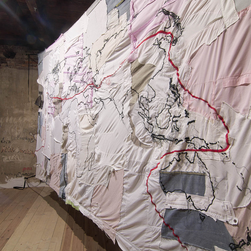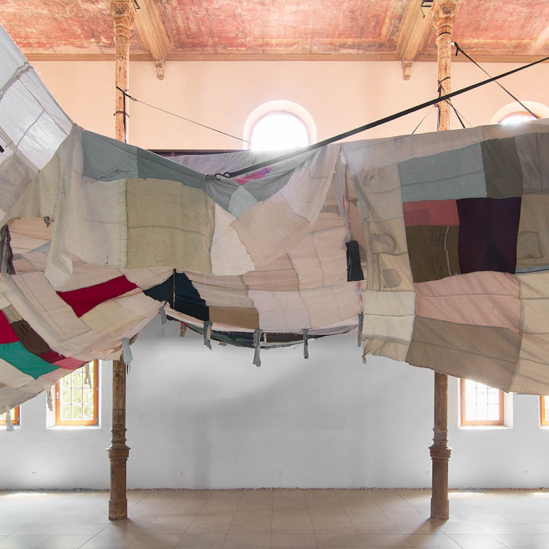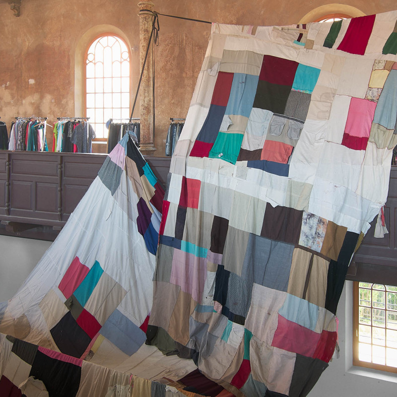 The Trnava version of the installation is adapted to the Slovak context. The artistic team researched local recycling processes and collaborated with community initiatives such as Baterkáreň and students from the School of Design – Bohumil Bača Private Secondary School of Applied Arts. The result is a new textile object made from clothing collected through an open call and sewn collectively during a workshop. The exhibition also includes video documentation from Nigeria and Slovakia, showing how textile waste travels the world—and what impact it leaves behind. re-(t)exHile is not only an art project but a call to change. We reflect, create, sew, recycle—and ask: What is still material, and what is already waste? Can textiles have a second life—and can we develop a new relationship with the world through them?