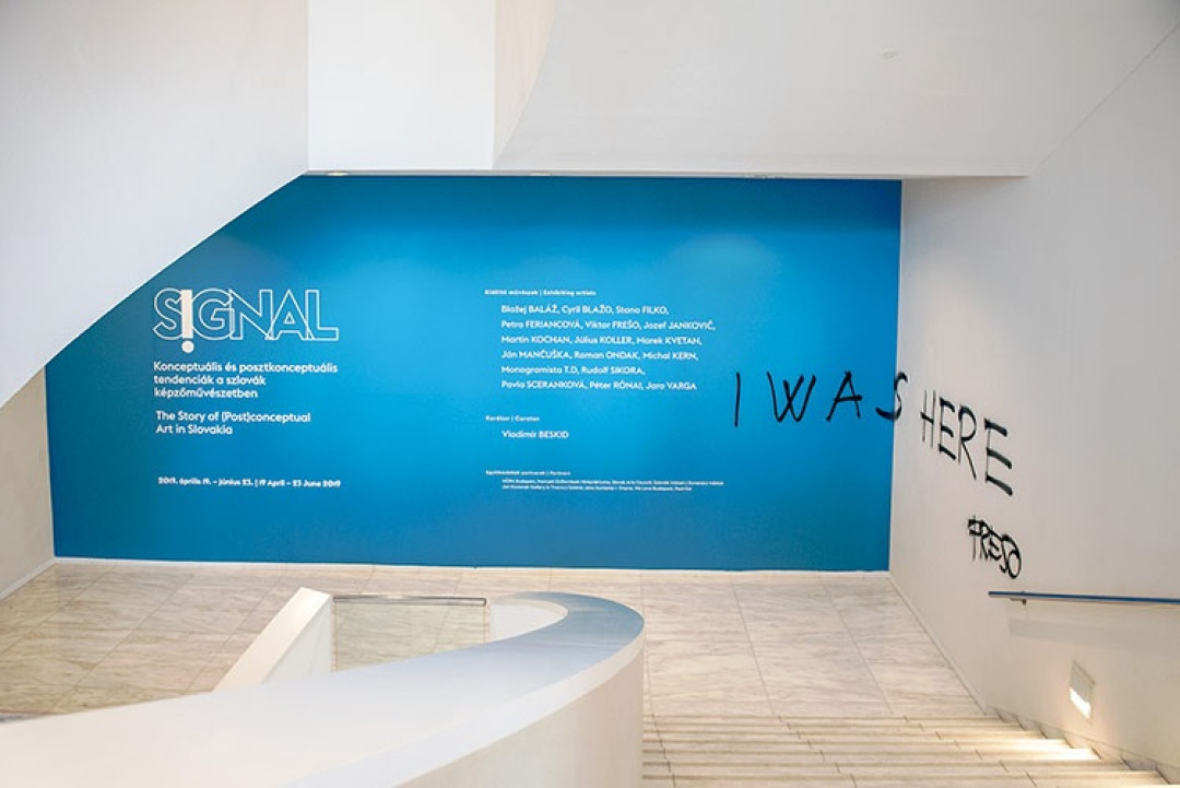 Trvanie výstavy: 18. apríl – 23. jún 2019 Nosným zámerom výstavy SIGNÁL – príbeh slovenského (post)konceptuálneho umenia v renomovanej inštitúcii Ludwig museum v Budapešti je prvýkrát predstaviť maďarskému a medzinárodnému publiku v ucelenej podobe vývoj nášho konceptuálneho umenia od 60. rokov dodnes. Výstava prezentuje 17 popredných autorov/-riek v priereze posledných šesť desaťročí a prezentuje mimoriadne vysokú kvalitu týchto tendencií na Slovensku aj v rámci internacionálneho vývoja umenia. Za dôležitý moment považujeme prezentovať silný “vpád“ konceptuálneho umenia na Slovensku v polovici 60. rokov minulého storočia na domáce výtvarne prostredie a kontinuitu tohto spôsobu uvažovania dodnes. Vstup konceptuálneho spôsobu práce znamenal teda nielen ďalšiu tendenciu moderny, ale zásadný obrat, inú vizuálnu kultúru, preformátovanie výtvarného umenia a jej umeleckej reči (text art, projekt art, antiobraz, anti-art a pod.). Výstava tak predstavuje pionierov a zakladateľov slovenského konceptu 60. a 70. rokov (S. Filko, J. Koller, M. Kern, R. Sikora, Monogramista T.D), post-konceptuálne prístupy generácie 80.-90. rokov (B. Baláž, P. Rónai, R. Ondák, J. Mančuška) a nové post-mediálne myslenie mladej generácie po roku 2000 (C. Blažo, P. Feriancová, V. Frešo, M. Kochan, M. Kvetan, P. Screanková a J. Varga). Základný koncept výstavy nie je však postavený na lineárnom, či generačnom radení, ale prinesie vizuálne dáta v štyroch nosných blokoch: 1. Nulté gestá (naplnené rebelské gestá)- od negácie k prázdnu
