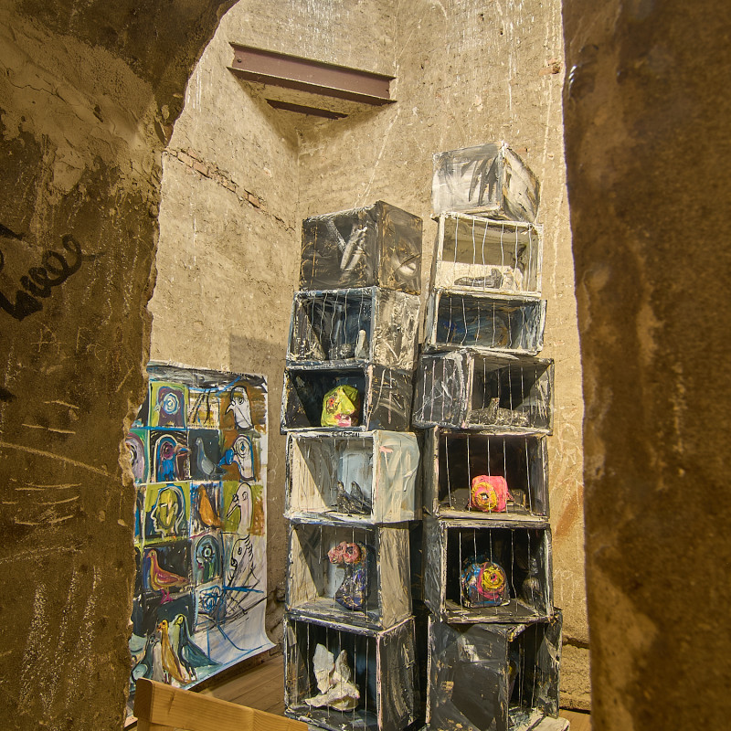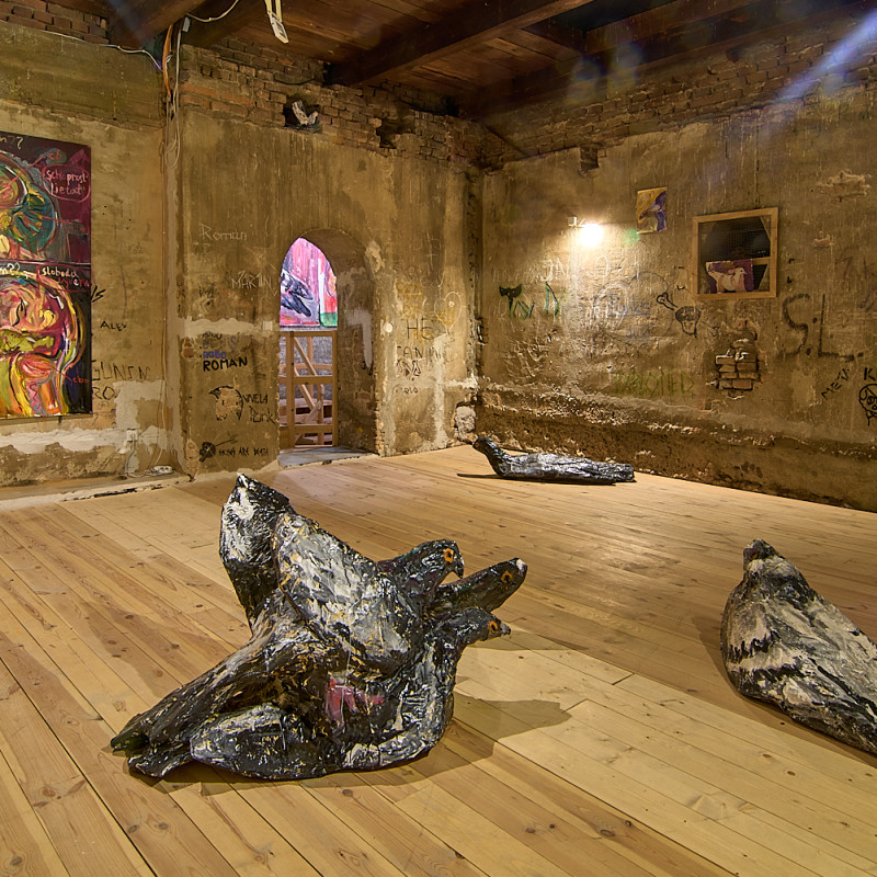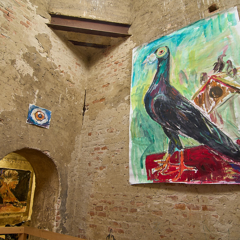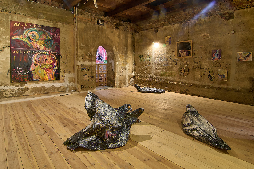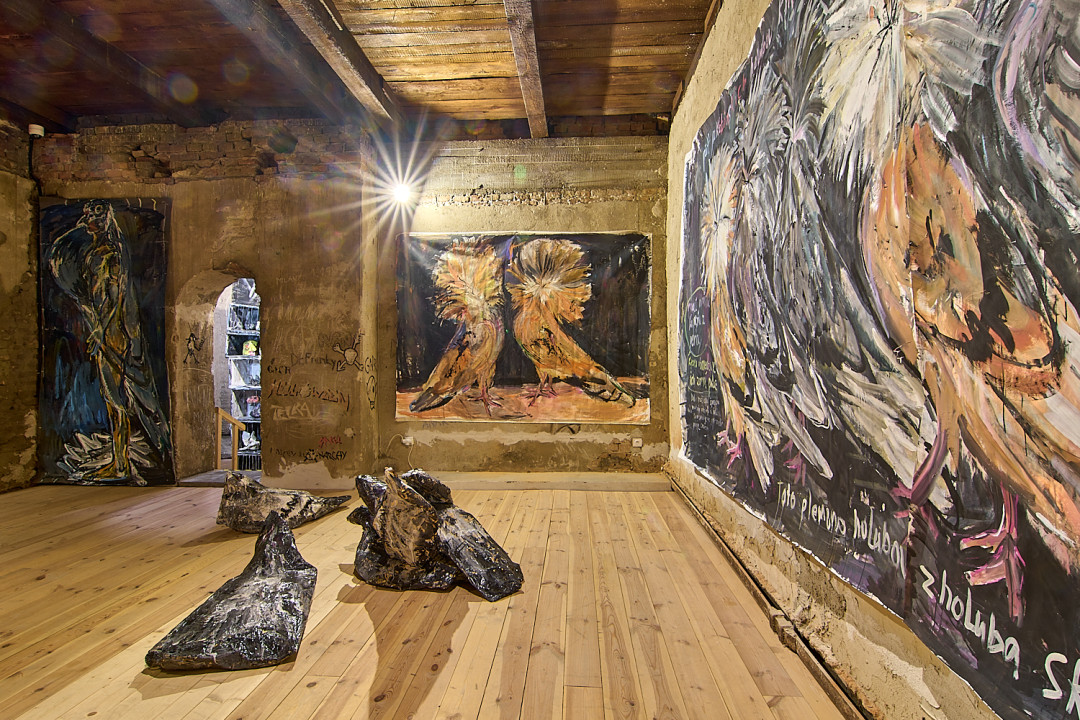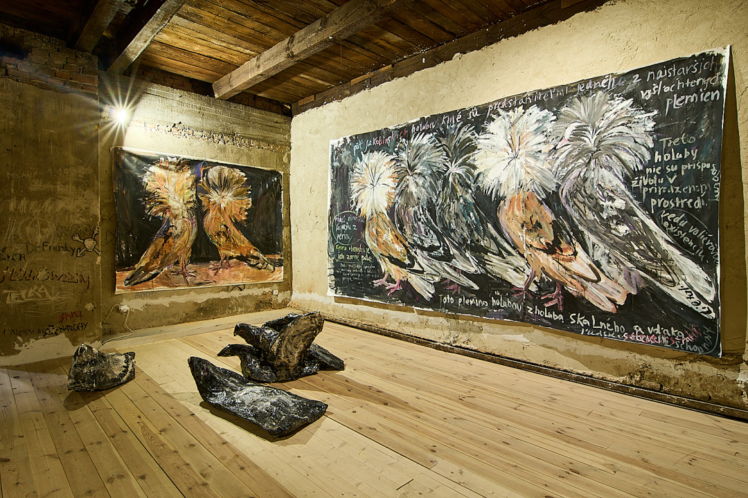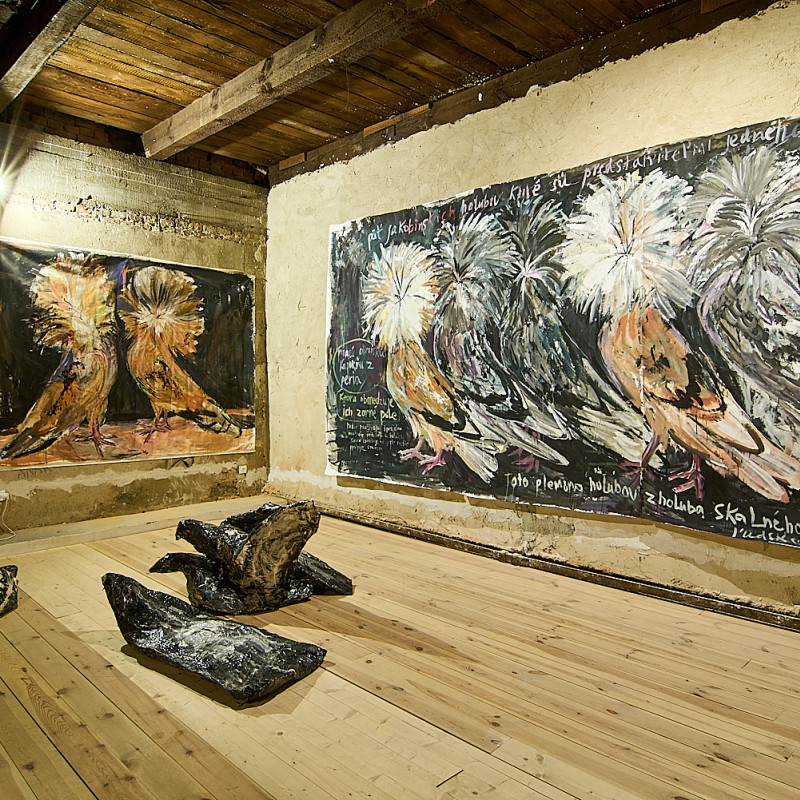 Zámerom výstavy V holubníku bolo príliš tesno je prezentovať týchto vtákov v kontexte nenaplneného sna o utopickom živote v socialistických krajinách. Aj napriek tomu, že holubice boli frekventovaný mierový námet umelcov východného bloku, autorka vyrastajúca už v demokracii ich význam s generačným odstupom chápe inak. Na aktuálnej výstave svojich protagonistov zatvára do klietok, vrství ich a vytvára z nich panelové domy, pričom každú bunku napĺňa individuálnym príbehom o generačnej traume, ktorú si aj napriek skoro trom desiatkam rokov života v demokracii stále nesieme. Klietka narúša pohľad na dokonalé sociálne bývanie a premieňa utopický ideál na dystopickú katastrofu izolácie. Podobne ako sú šľachtene holuby nútené žiť vo svojich pohodlných holubníkoch, častokrát strácajúc schopnosť lietať, človek socialistický stratil svoje právo na slobodu či sebavyjadrenie.
