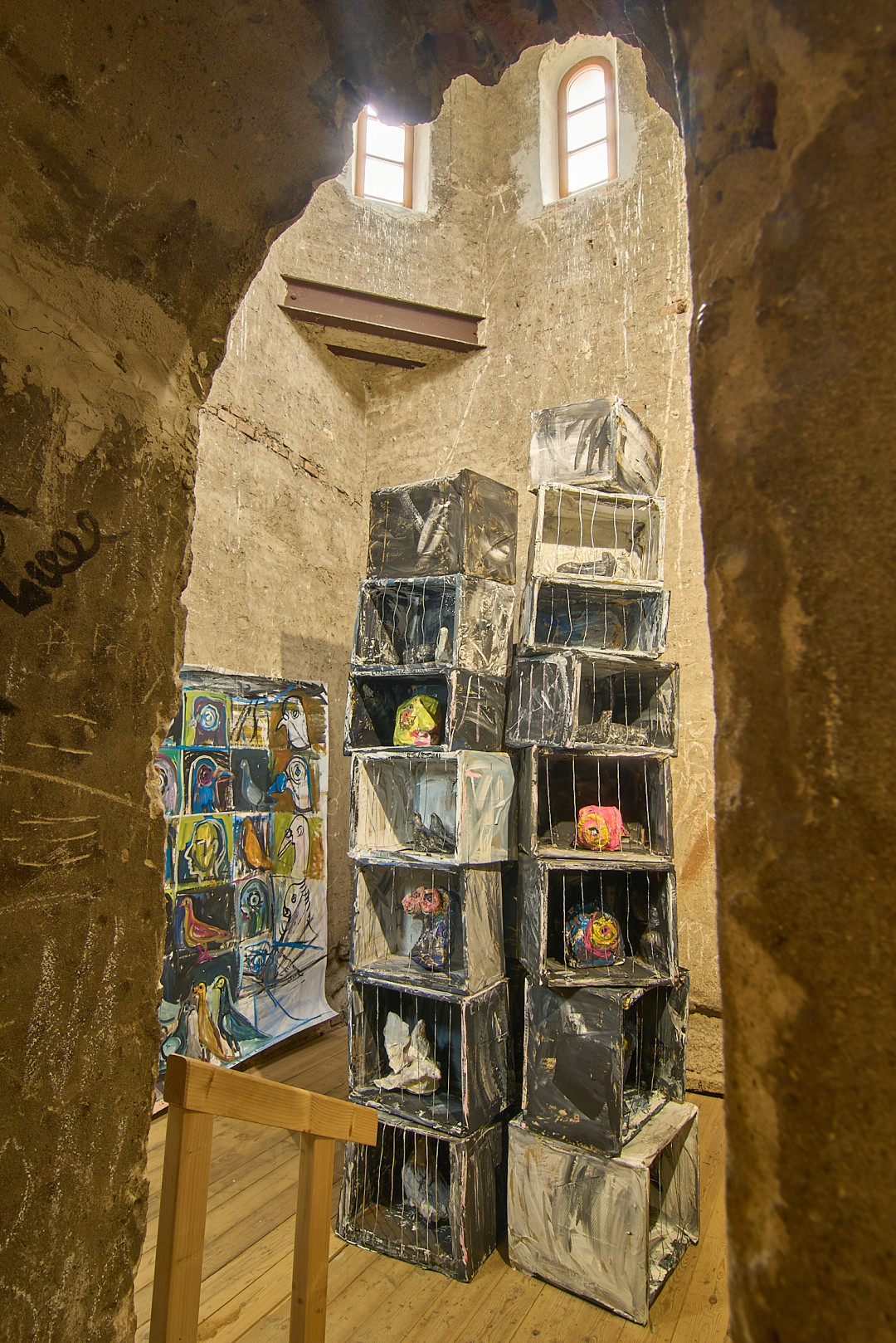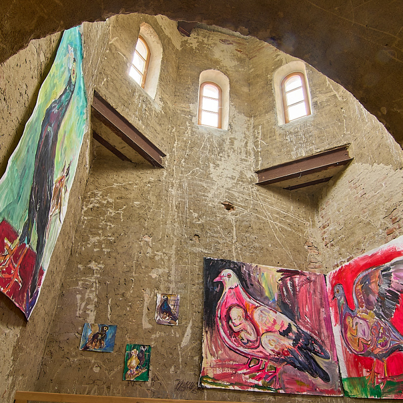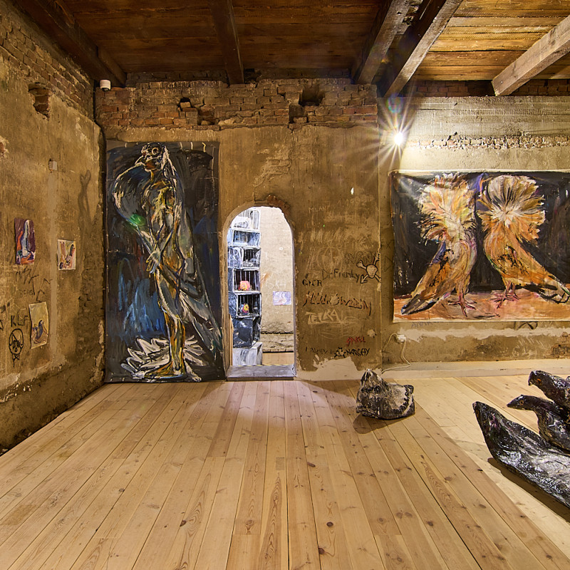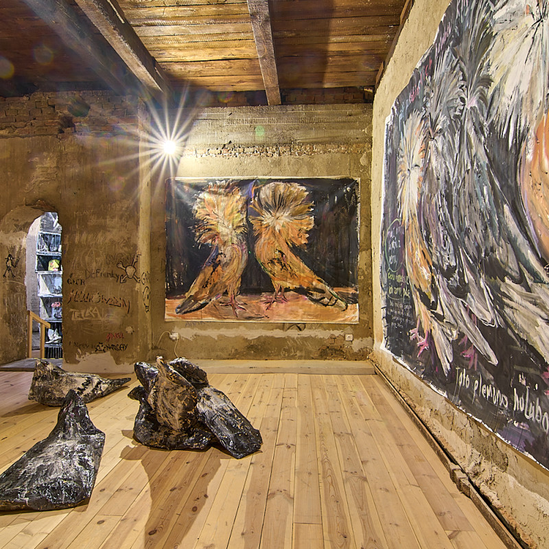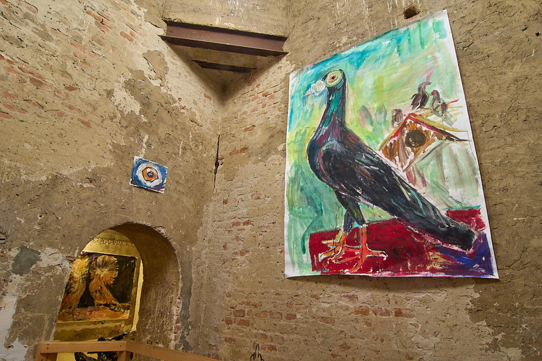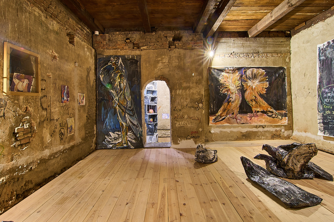 Zámerom výstavy V holubníku bolo príliš tesno je prezentovať týchto vtákov v kontexte nenaplneného sna o utopickom živote v socialistických krajinách. Aj napriek tomu, že holubice boli frekventovaný mierový námet umelcov východného bloku, autorka vyrastajúca už v demokracii ich význam s generačným odstupom chápe inak. Na aktuálnej výstave svojich protagonistov zatvára do klietok, vrství ich a vytvára z nich panelové domy, pričom každú bunku napĺňa individuálnym príbehom o generačnej traume, ktorú si aj napriek skoro trom desiatkam rokov života v demokracii stále nesieme. Klietka narúša pohľad na dokonalé sociálne bývanie a premieňa utopický ideál na dystopickú katastrofu izolácie. Podobne ako sú šľachtene holuby nútené žiť vo svojich pohodlných holubníkoch, častokrát strácajúc schopnosť lietať, človek socialistický stratil svoje právo na slobodu či sebavyjadrenie.