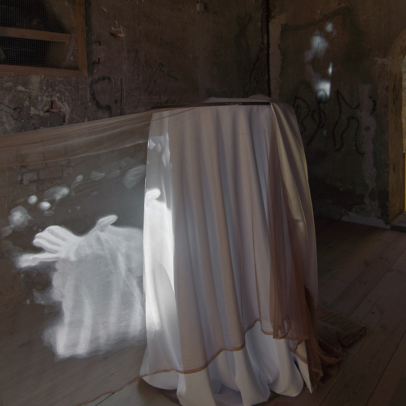 The artist reveals and shapes potential gestures hidden beneath the drapery in the exhibition’s central work, where she herself becomes the Velata figure in a digital performance. In doing so, she ascribes new meaning to the anonymous woman—partially legible, typified, one among many similar ones. Čarnecká gives her specificity, humanizes her, uncovers her identity, gives her a face—and through that, brings her to life.