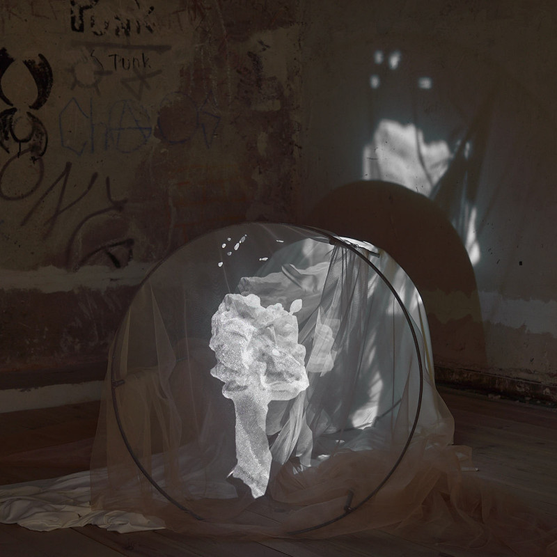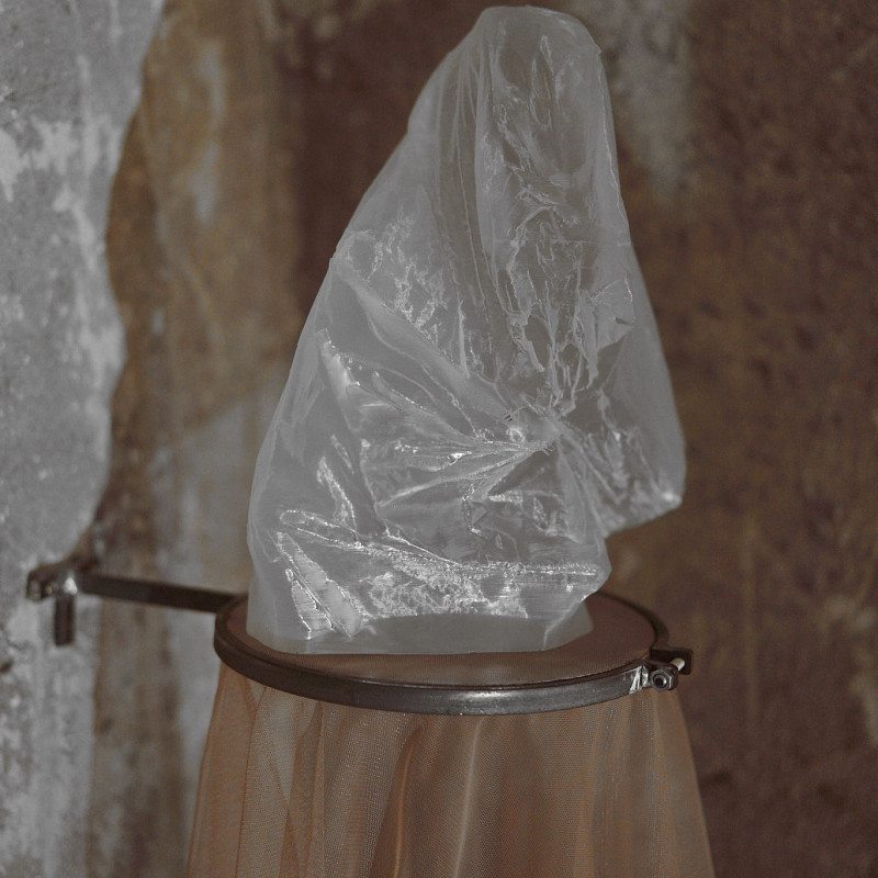 Beyond its physical symbolism in art history, the bust also represents a metaphor for identity, thought, and the human mind itself. In her most recent work, Čarnecká focuses specifically on the Velata figure—a phenomenon rooted in art history, where the veiled (female) face and head have been prominent motifs since antiquity. These depictions have played significant roles throughout the history of art, carrying various symbolic interpretations across cultures. Building on this tradition, the artist explores the interplay between concealment and revelation, the visible and the invisible, while also reflecting on the societal position of women.
