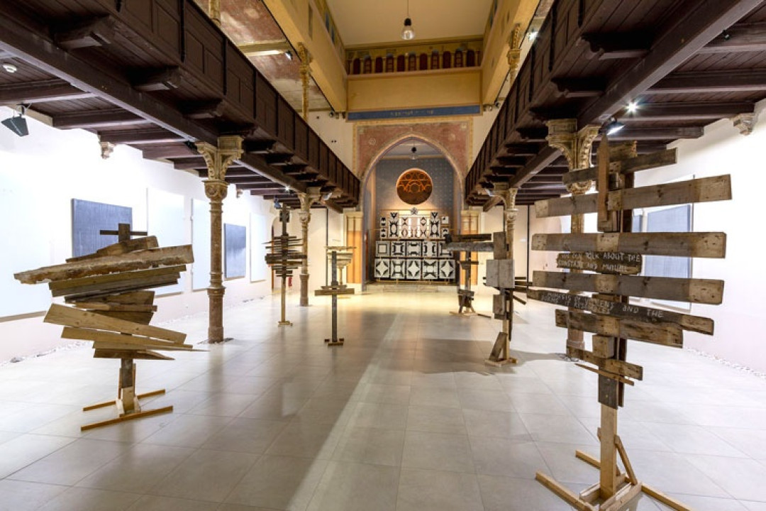 Využitím rozličných médií, od plošného obrazu po objekty reprezentujúce staré smerové tabule, pretvárajú interiér na svojbytnú krajinu. Priestor synagógy sa tak svojim charakterom a vlastnou minulosťou stáva súčasťou diela, kde autori hľadajú cestu z kruhu násilia, útlaku a totalitných praktík. Nabádajú k dialógu medzi minulosťou a možnou budúcnosťou, pretože ak včera už bolo neskoro a zajtrajšok nemusí prísť, jediná možnosť je tak urobiť dnes. Viktoria Shumskaya (1968, Lugansk, Ukrajina)