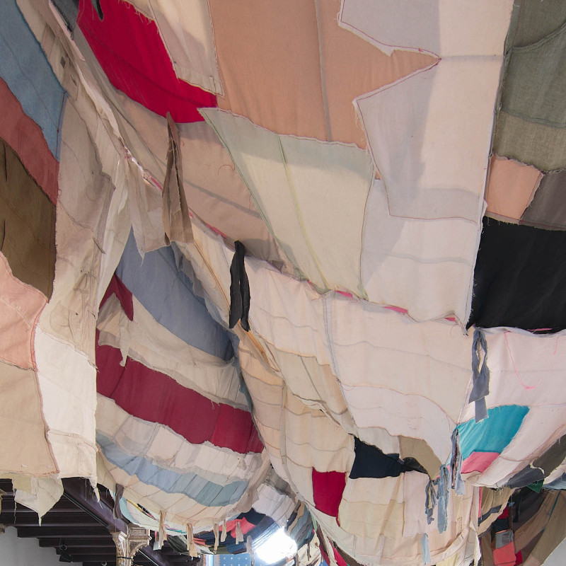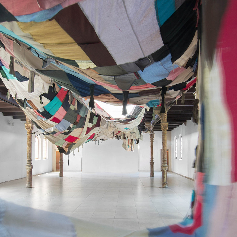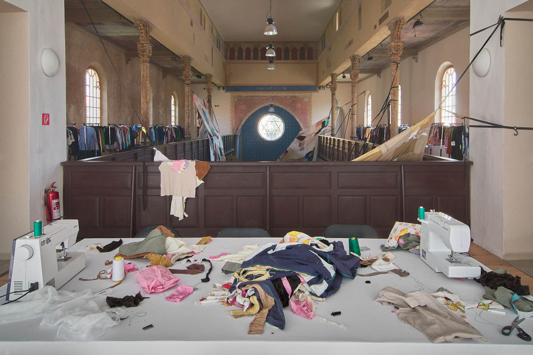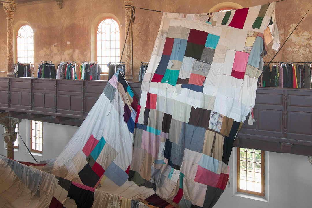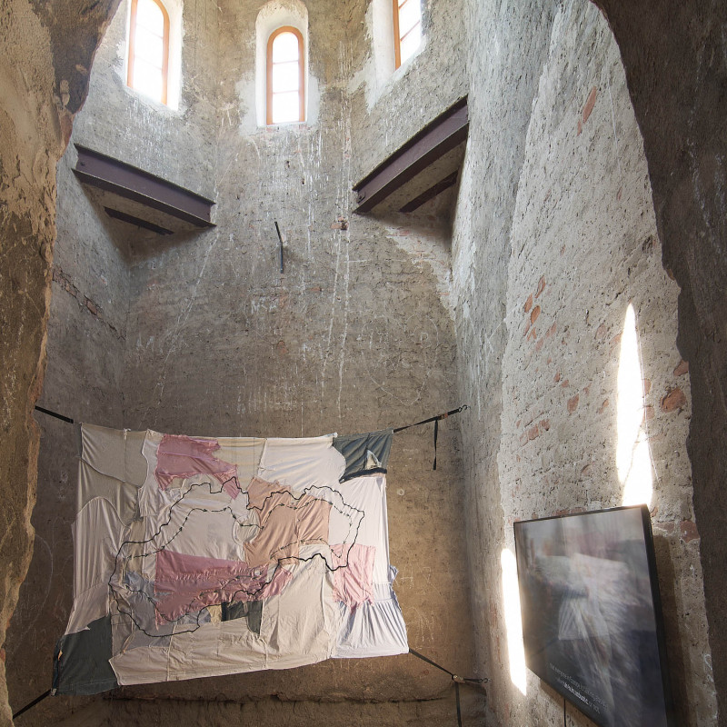 The Trnava version of the installation is adapted to the Slovak context. The artistic team researched local recycling processes and collaborated with community initiatives such as Baterkáreň and students from the School of Design – Bohumil Bača Private Secondary School of Applied Arts. The result is a new textile object made from clothing collected through an open call and sewn collectively during a workshop. The exhibition also includes video documentation from Nigeria and Slovakia, showing how textile waste travels the world—and what impact it leaves behind. re-(t)exHile is not only an art project but a call to change. We reflect, create, sew, recycle—and ask: What is still material, and what is already waste? Can textiles have a second life—and can we develop a new relationship with the world through them?