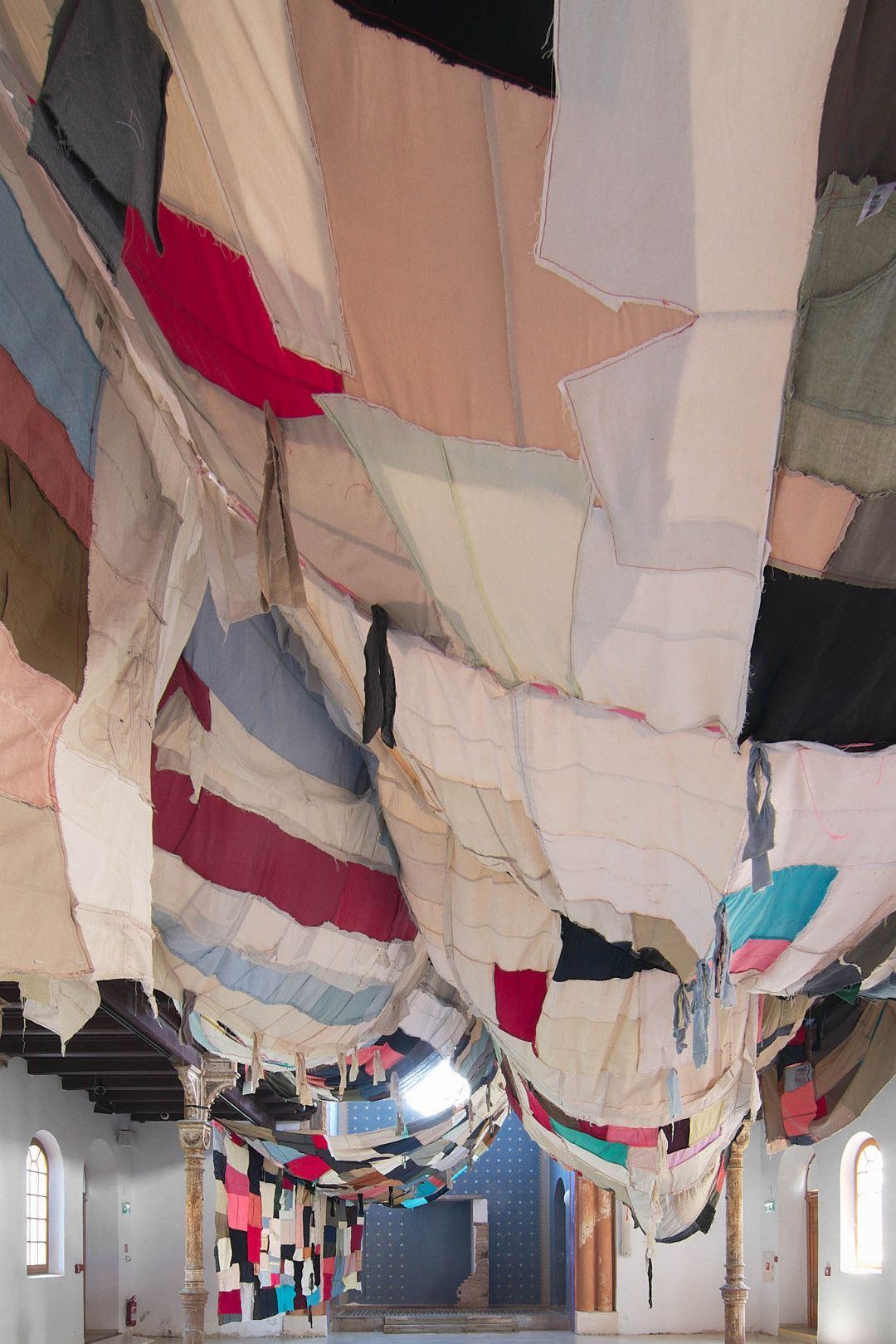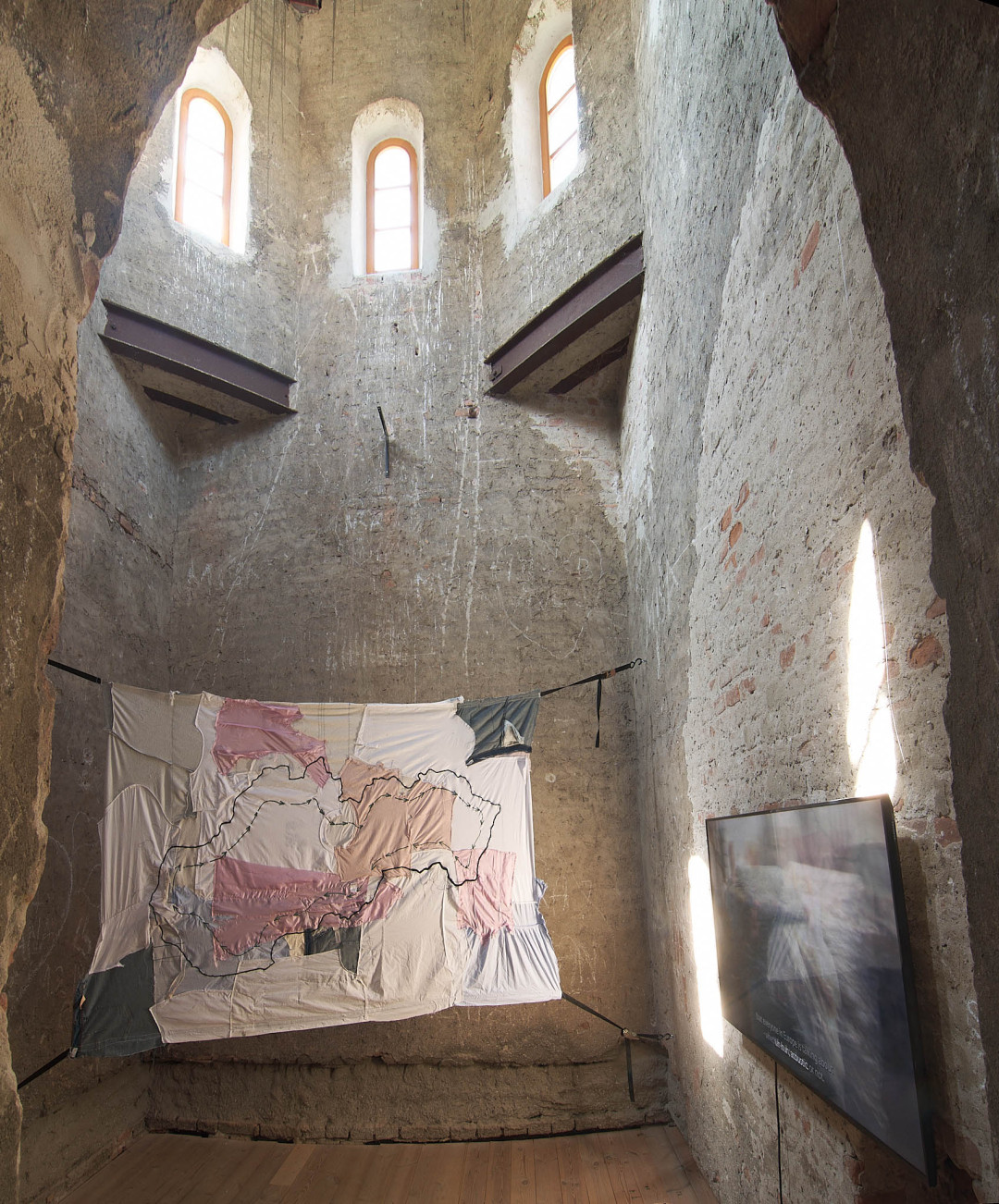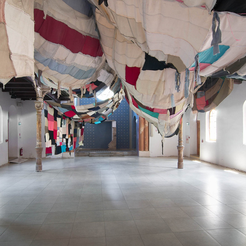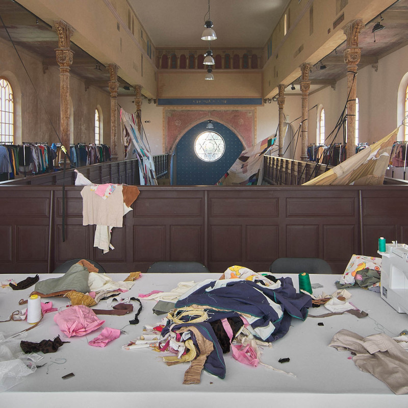 The Trnava version of the installation is adapted to the Slovak context. The artistic team researched local recycling processes and collaborated with community initiatives such as Baterkáreň and students from the School of Design – Bohumil Bača Private Secondary School of Applied Arts. The result is a new textile object made from clothing collected through an open call and sewn collectively during a workshop. The exhibition also includes video documentation from Nigeria and Slovakia, showing how textile waste travels the world—and what impact it leaves behind. re-(t)exHile is not only an art project but a call to change. We reflect, create, sew, recycle—and ask: What is still material, and what is already waste? Can textiles have a second life—and can we develop a new relationship with the world through them?
