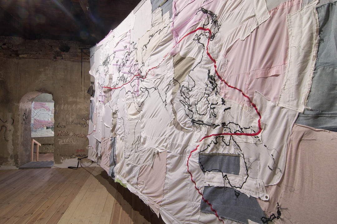 The international art project re-(t)exHile comes to Trnava to spark a discussion about what happens to our clothes once we stop wearing them. The artistic collective of Martinka Bobrikova, Oscar de Carmen & María Alejandra Gatti presents an exhibition that addresses textile waste, the ecological crisis, and global inequality. The project was created in response to the growing problems of the textile industry—its environmental impact, overproduction, and the unsustainable distribution of used garments, which often end up in countries of the Global South. The first phase of the project took place in 2024 at the biennale in Lagos, Nigeria, where a large-scale installation was created from more than 500 pieces of secondhand clothing.