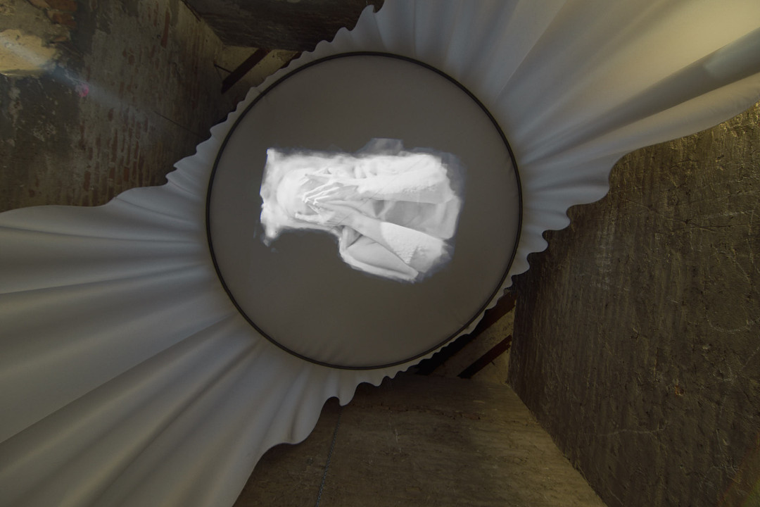 The artist reveals and shapes potential gestures hidden beneath the drapery in the exhibition’s central work, where she herself becomes the Velata figure in a digital performance. In doing so, she ascribes new meaning to the anonymous woman—partially legible, typified, one among many similar ones. Čarnecká gives her specificity, humanizes her, uncovers her identity, gives her a face—and through that, brings her to life.