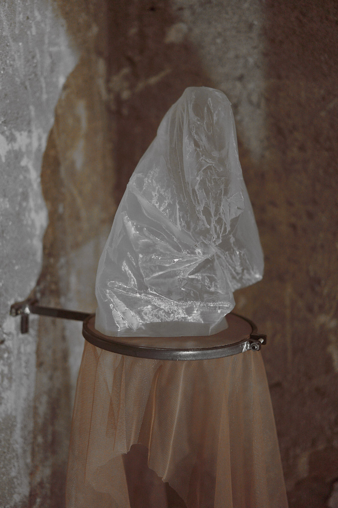 Beyond its physical symbolism in art history, the bust also represents a metaphor for identity, thought, and the human mind itself. In her most recent work, Čarnecká focuses specifically on the Velata figure—a phenomenon rooted in art history, where the veiled (female) face and head have been prominent motifs since antiquity. These depictions have played significant roles throughout the history of art, carrying various symbolic interpretations across cultures. Building on this tradition, the artist explores the interplay between concealment and revelation, the visible and the invisible, while also reflecting on the societal position of women.