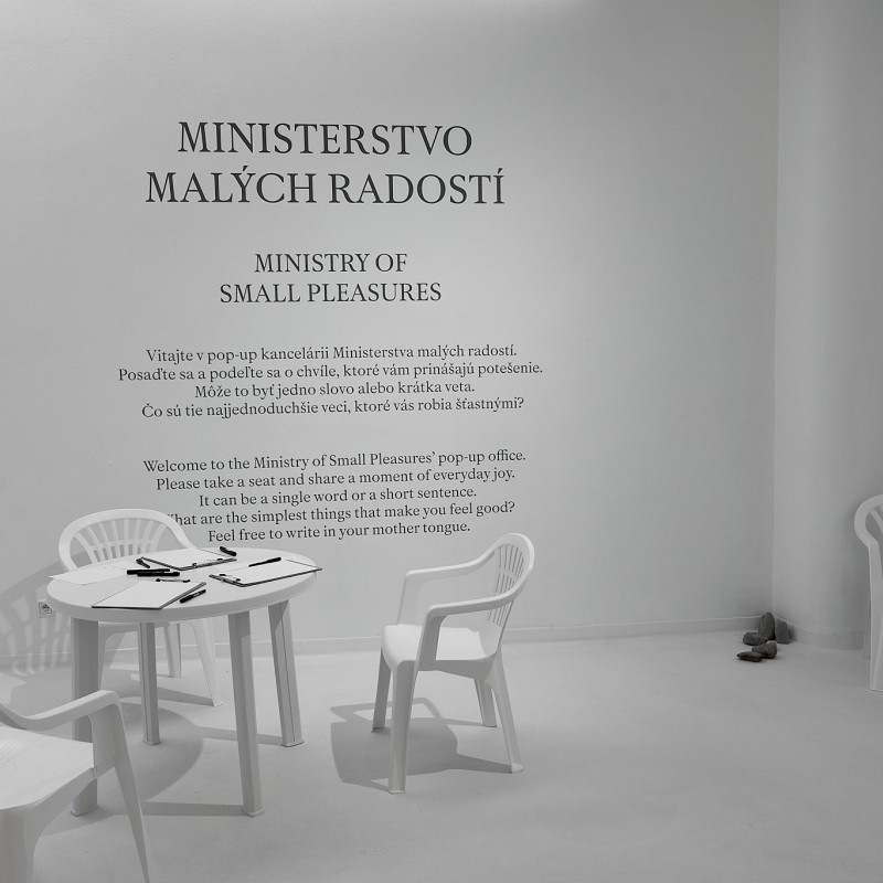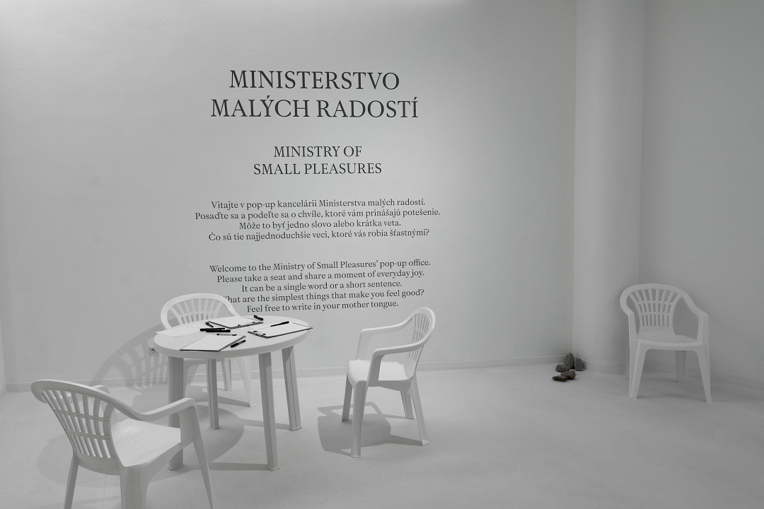 Výstava Čas na radosť je prvou väčšou prezentáciou projektu Ministerstvo malých radostí, ktorý Katarína Poliačiková rozvíja už tretí rok. Nachádzať radosť v každodennosti je dnes výzva – a zároveň spôsob, ako si chrániť vnútornú pevnosť v neistých časoch. V bližšom zábere Čas na radosť odhaľuje ďalšiu vrstvu: že v našom emočnom prežívaní sme si podobnejší*ie a bližší*ie, než by sa mohlo zdať – bez ohľadu na vek, status či miesto, odkiaľ pochádzame.